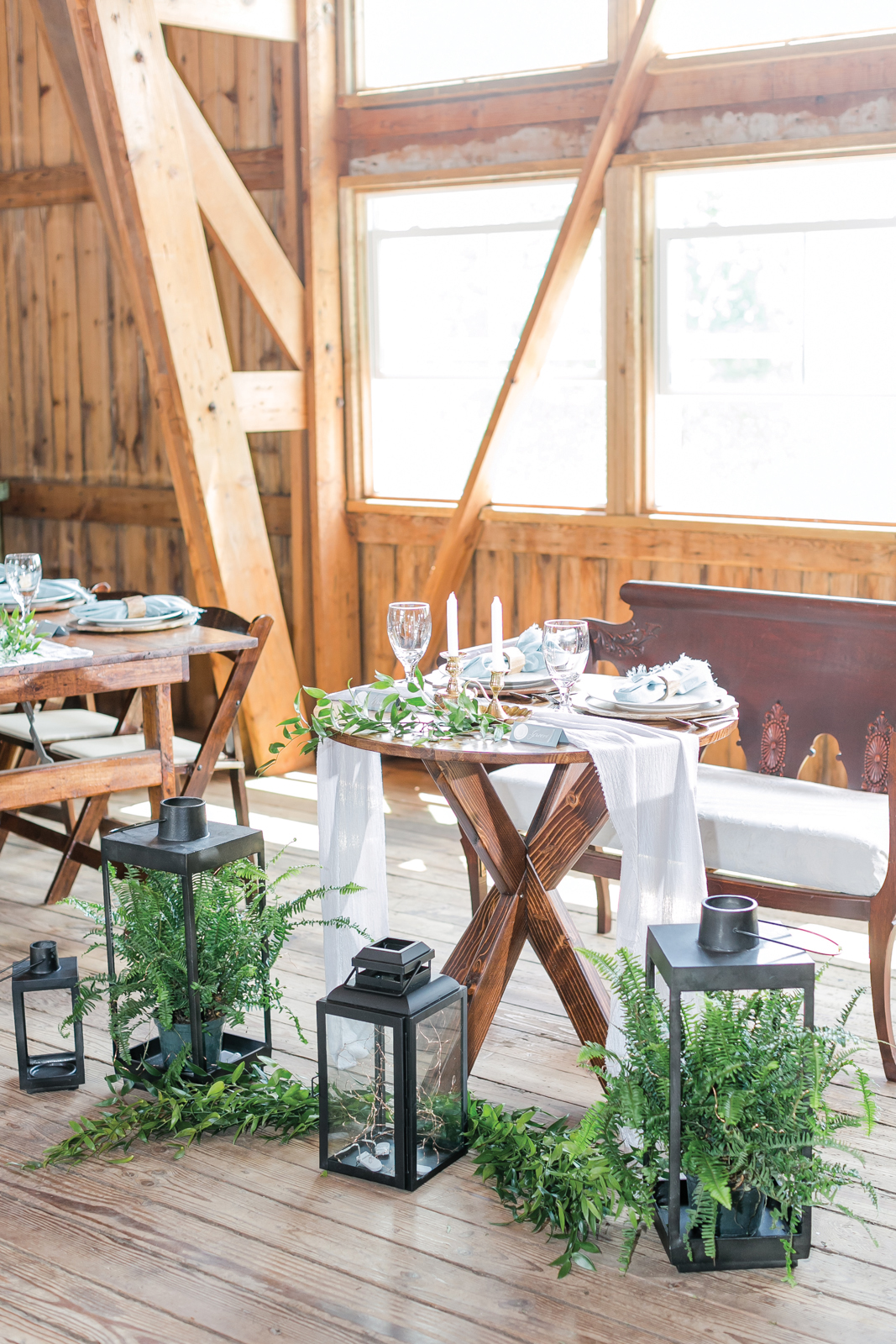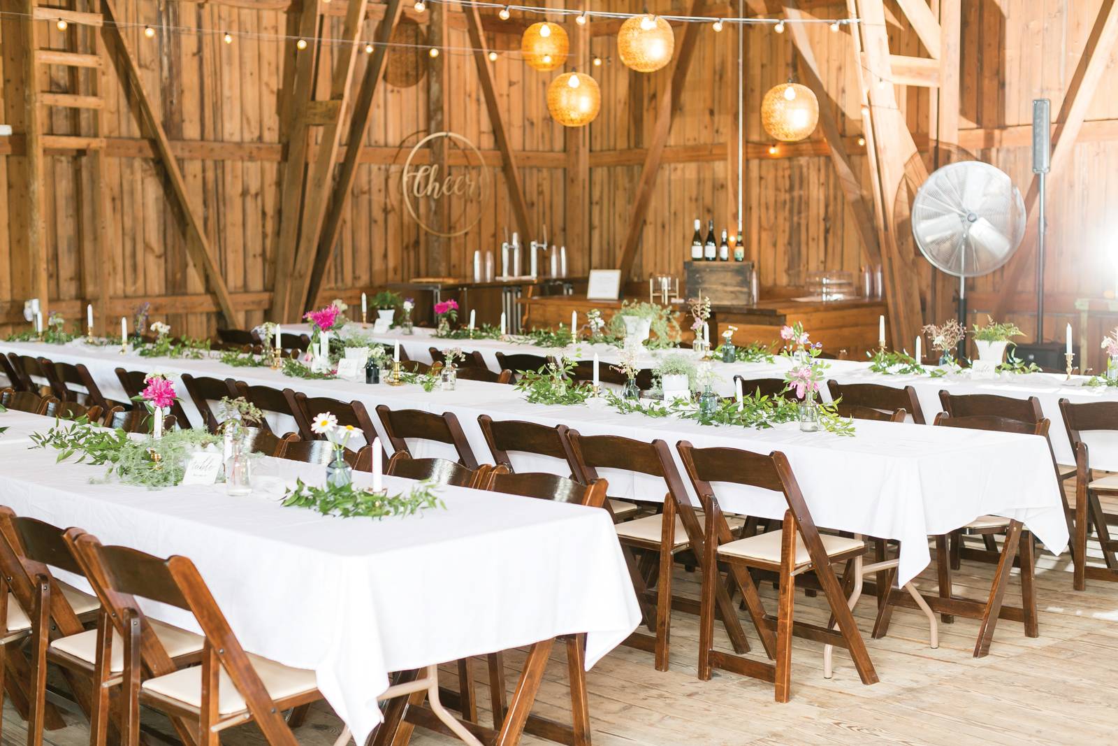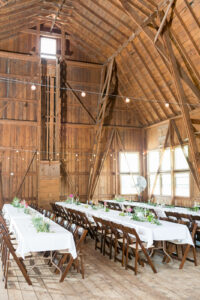 The barn at Vintage Fields was our perfect blend of rustic and natural. It had the familiar feeling of home and our small hometown where we grew up. For decoration inspiration, I based everything around my bouquet. Being a horticulturist, floral was my top priority. I kept the color scheme the same throughout all our decorations, letting natural wood elements fall into place whenever possible.
