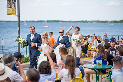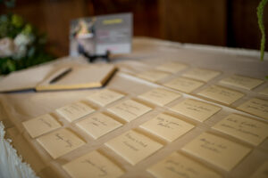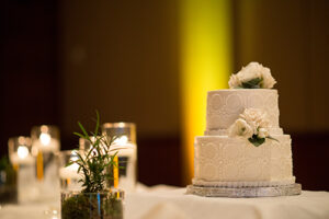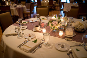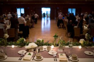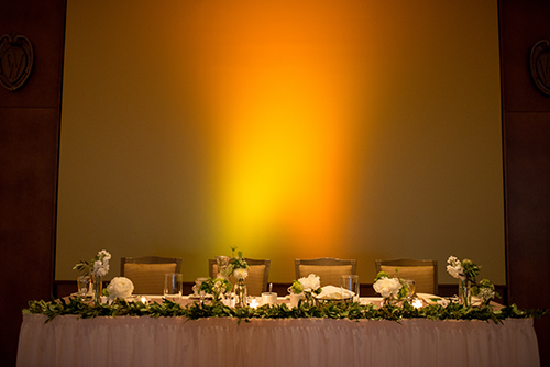 Growing up in a family that owns a landscaping business, flowers were very important to Whitney. With a color palette of white, shades of blush pink and earthy greens, the tables were dressed in all white linens and eucalyptus greenery cascading down them.