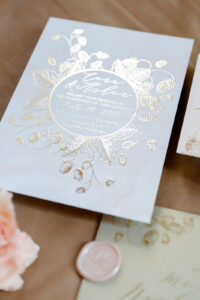 Custom, gold-foiled wedding paper goods from LK Bridal Studio are a stunning touch to your big day!