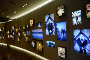 DID YOU USE ANY SPECIALTY CHAIRS, LINENS, CHARGERS, GLASSWARE OR DINNERWARE? The chairs at the Edgewater were beautiful–gold cushion seats. We used a textured almond dupioni linens on the head table with a Moroccan runner, navy napkins atop glass and gold beaded chargers with a little sprig of rosemary on top!