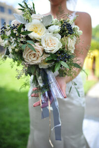 Also for personal touches, I wore one of my grandmother’s garters and I used clipped my other grandmother’s wedding earrings to my bouquet that day.