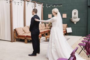 These two shared a precious first look on the venue’s outdoor patio. Nick’s reaction to his beautiful bride completely melts our hearts.