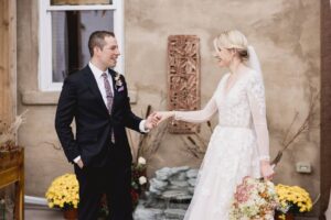 After Sarah moved back to Wisconsin, Nick proposed over coffee, and the two then had a sweet, intimate marriage ceremony exactly two years after that first date on March 31, 2019. On October 2, 2021, the Madison couple finally celebrated with all of their loved ones at the charming Blanchard Hall!