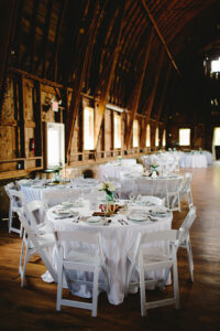 DID YOU USE ANY SPECIALTY CHAIRS, LINENS, DINNERWARE OR GLASSWARE?? We used a miss match of vintage dinnerware with white tablecloths and some of our cocktail tables had lace linens.?