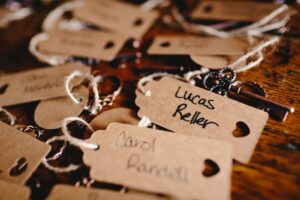 Alisha says, “Each guest had a key/bottle opener with their name and table number. On top of the tables were cards with our hashtag and how to send them to social media?”