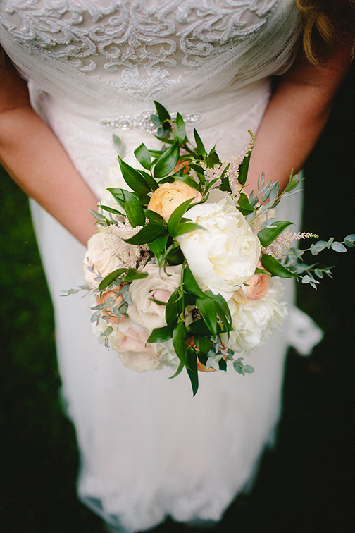 DESCRIBE YOUR WEDDING FLOWERS: B-Style in Mazomanie did such a great job. We used peonies, roses, and a lot of greenery.?
