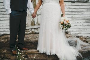 Today we’re sharing beautiful images by the talented Abbots Lane of this vintage romantic barn celebration, held at Sugarland Barn in the Wisconsin countryside of Arena. Using peonies, roses and greenery, the floral design was exquisitely lush with blush, peach and lavender tones. Alisha and Derek used minimal decor so the natural beauty of the restored rustic barn could shine through.