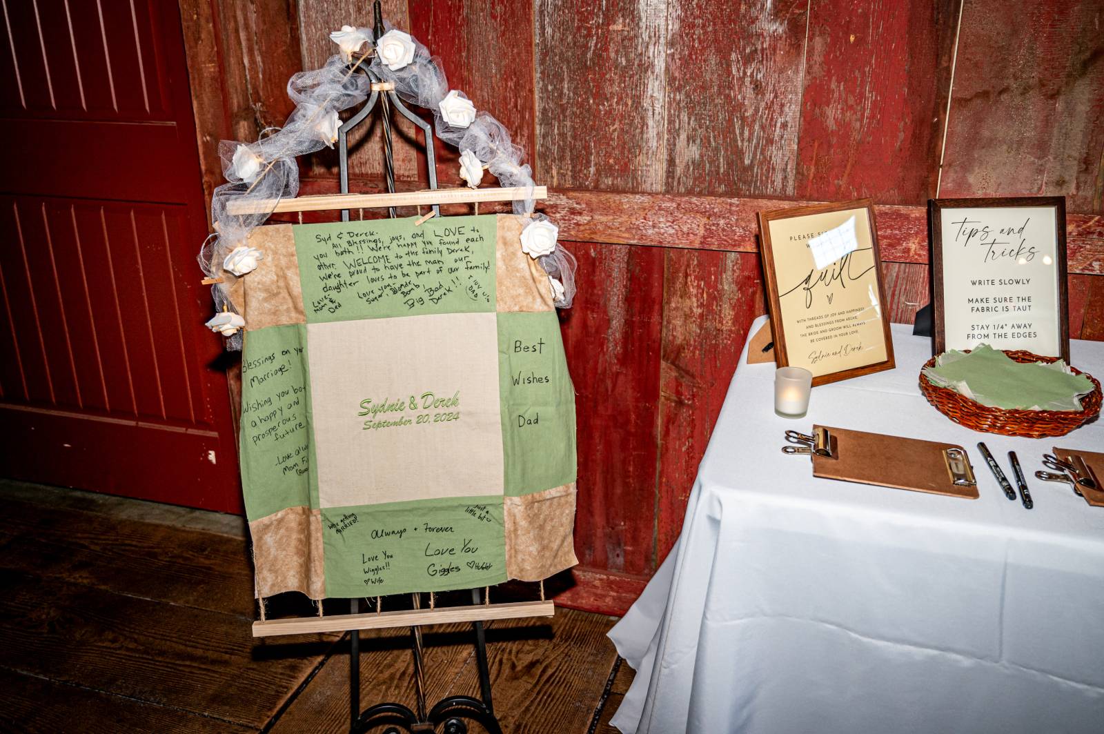 Authenticity was at the forefront for Sydnie & Derek when it came to the details. At their reception, they included a quilted guestbook. Each guest signed and wrote a message on a square, which will be sewn into a family heirloom. They also worked hard to create a meaningful (and flavorful!) favor.