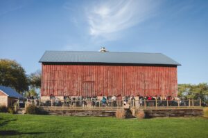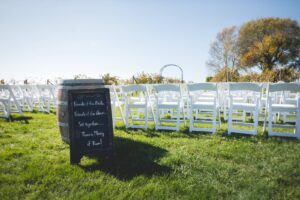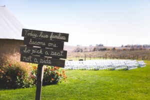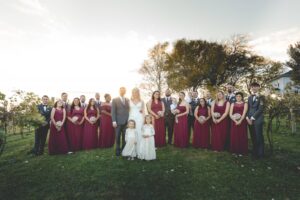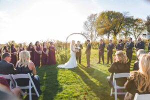 Paige and Vincent’s outdoor ceremony in the vineyard at Over the Vines, was picture perfect with beautiful sunny skies on a Fall October day. Complete with a charming and true Wisconsin rustic barn wedding reception with tall ceilings and sparkling chandeliers as guests dined beneath with a feast from Wisconsin wedding caterer, Gaylord Catering. Adorned with DIY details like the eco-friendly floral centerpieces, and an escort card display made of barn wood doors, it’s the type of celebration you’re bound to love with The Wedding Flashers sharing it all right here!