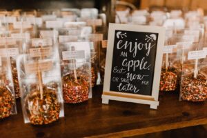 This is the kind of wedding that makes us fall in love with fall weddings all over again. And with Wisconsin’s weather, it’s no surprise a tornado occurred, having guests seek shelter but that certainly made for all that more special and memorable of a day for the bride, groom and their guests. Rustic in a way that will stand the test of time yet unique and packed with personal touches, including a caramel apple station, dried floral bouquets, garland, and handwritten signs, this gorgeous barn celebration captured by Dave Stemikis Photography will forever be beautiful.