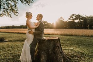 WHAT WAS YOUR FAVORITE MOMENT FROM YOUR WEDDING? The weather was less than cooperative on our wedding day. Rain forced us to move our ceremony indoors, and an actual tornado sent our guests seeking shelter among the livestock pens in the lower level of our barn venue. Lucky for us, the tornado was a hit with our guests and the weather didn’t dampen the fun. But there was one magical moment when a few rays of sunshine broke through the dark skies and set the farm fields around our venue aglow. Mitch and I raced outside with our photographers to enjoy a private moment together in the sun. In that moment, it felt like we could weather any storm life throws our way.