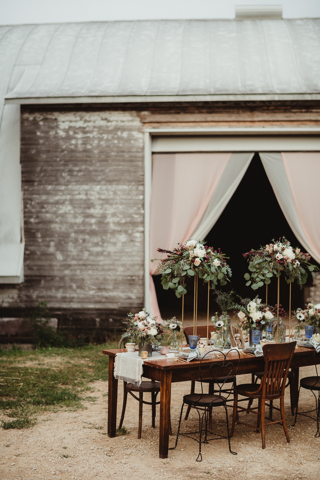 With coordination, design, florals, and rentals brought to you by Simply Glamorous Designs at Oregon Floral and Simply Glamorous Rentals & Event Design, we are so excited to bring you today's styled wedding scape. This sweet and rustic farm scene is embellished with delicate details, stunning blooms, eclectic decor, and unique, tasty treats.
