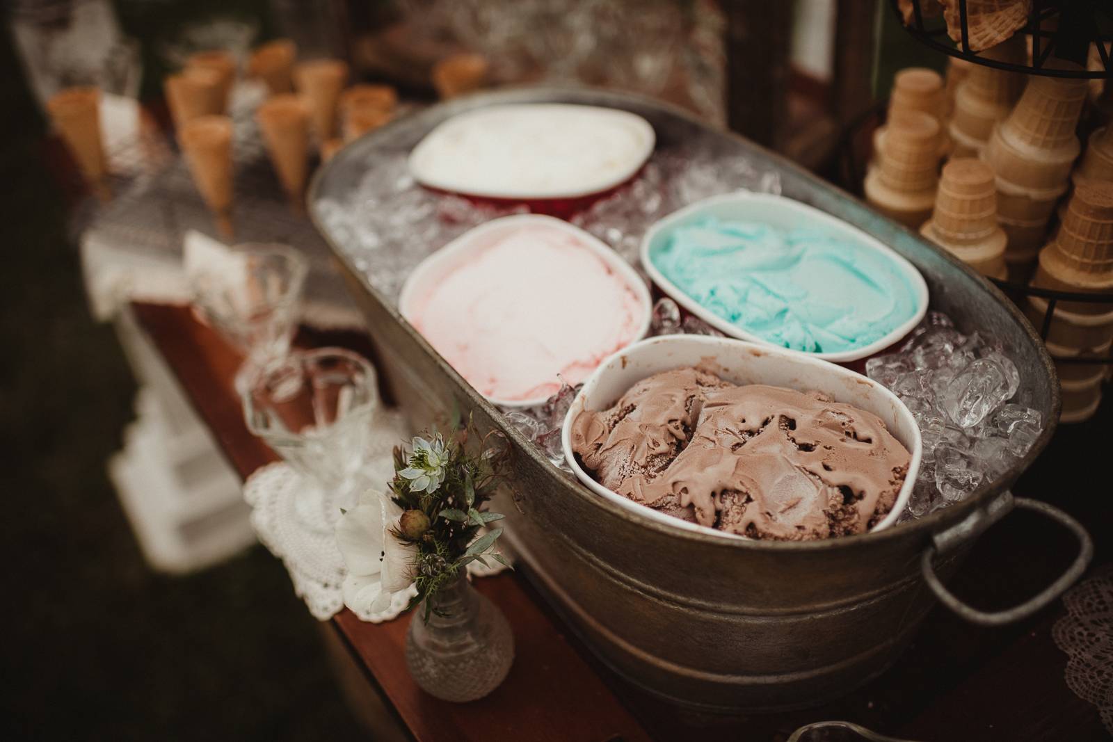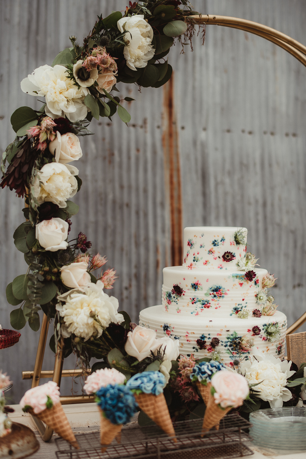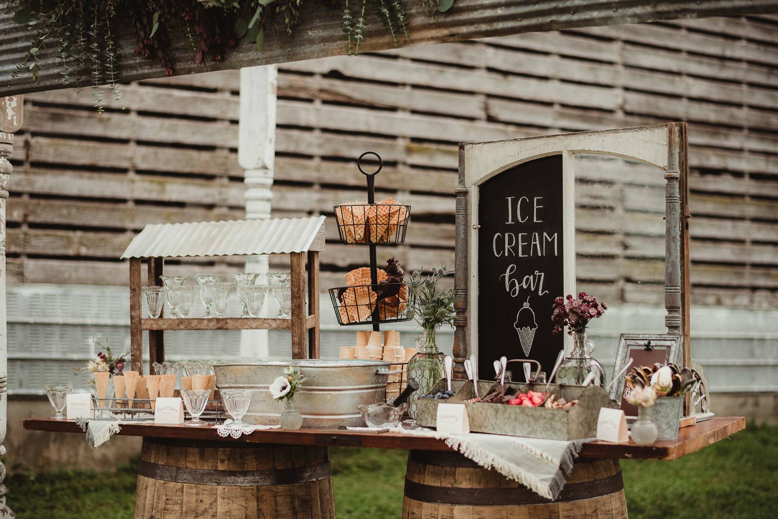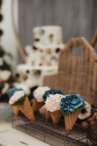 Any sweet treat from Craig’s Cake Shop will impress guests with its beautifully crafted design and delicious flavors. Their creativity in desserts is endless for your special day. We’re in love with their delicate, floral cake design and “ice-cream” treats in today’s rustic wedding scape