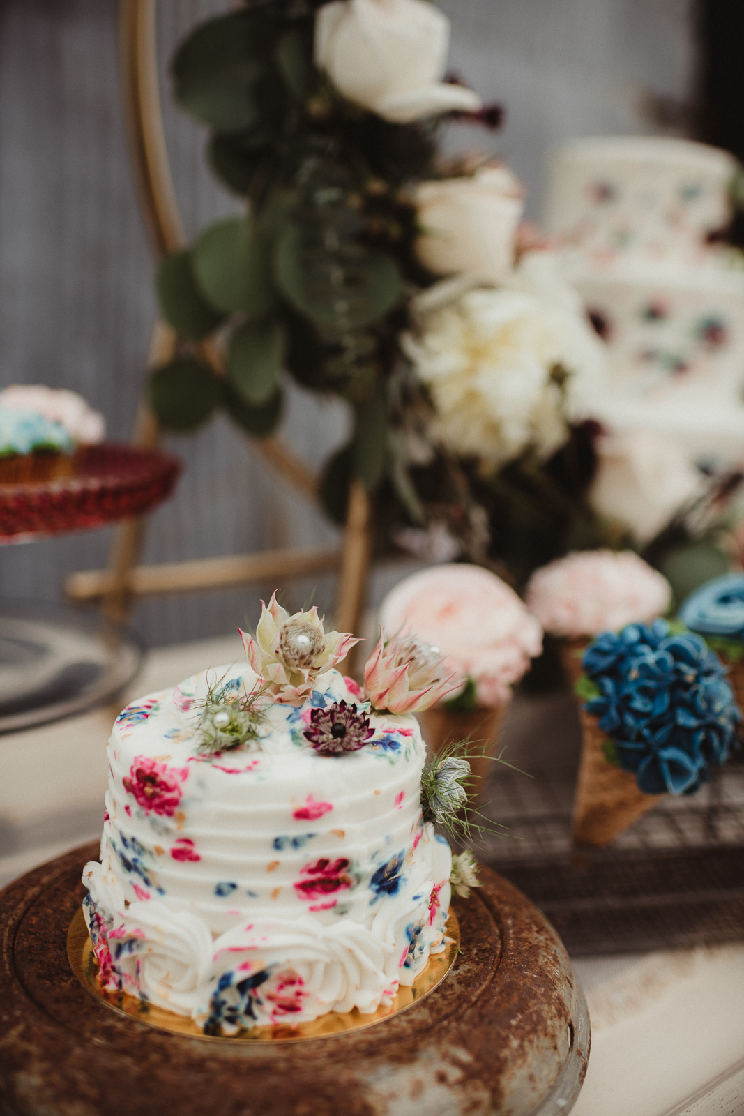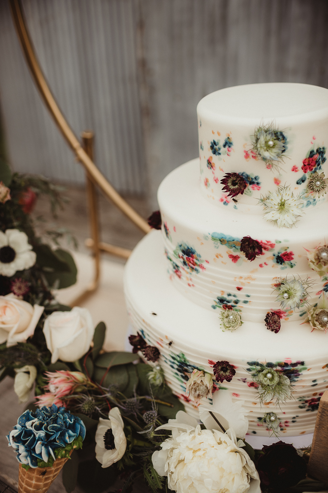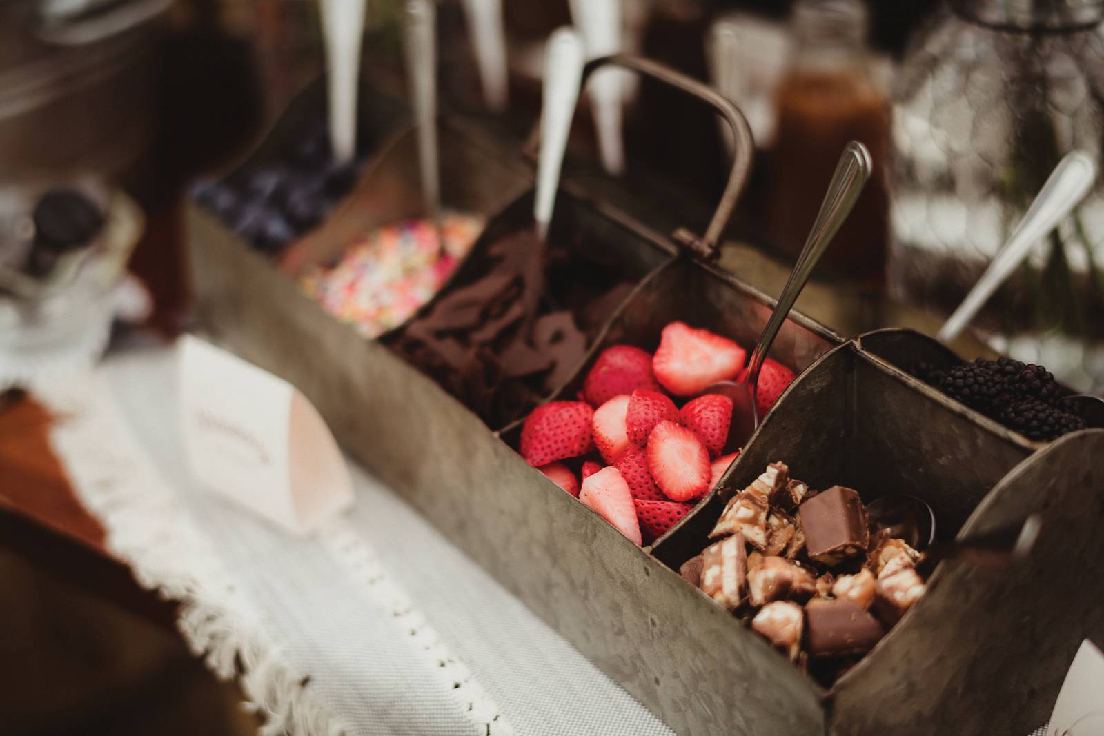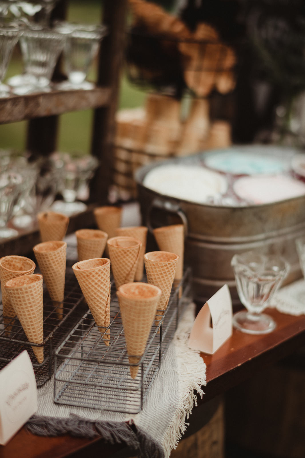 Any sweet treat from Craig’s Cake Shop will impress guests with its beautifully crafted design and delicious flavors. Their creativity in desserts is endless for your special day. We’re in love with their delicate, floral cake design and “ice-cream” treats in today’s rustic wedding scape