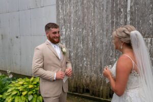 TELL US ABOUT YOUR PROPOSAL: Nick and I always take a trip in the fall, and in 2019, I told him it was his turn to pick where we go and plan the trip since I always do it. This time Nick planned it but wouldn’t tell me where we were going or doing. All I knew is that we were staying in a hotel somewhere north. On the day we left, his best friend showed up and said he was coming with us, and being honest, I wasn’t very thrilled because I thought it was a trip for just us. We left and drove to the “hotel,” but Nick actually had a house on a lake for us. A few hours after being there, my best friend and brother surprisingly showed up and told me they were staying for the weekend too. Then later that night, more of our friends showed up – it was so fun! The next day Nick proposed to me when we were sightseeing waterfalls. He did so well and put so much thought and effort into it to surprise me!