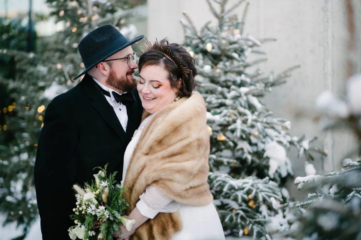 Sarah and Kendrick met online between Christmas and New Year’s, and as lifelong Wisconsin residents, decided to embrace the holiday season and snowy landscapes in their Mid-century modern winter wonderland wedding.