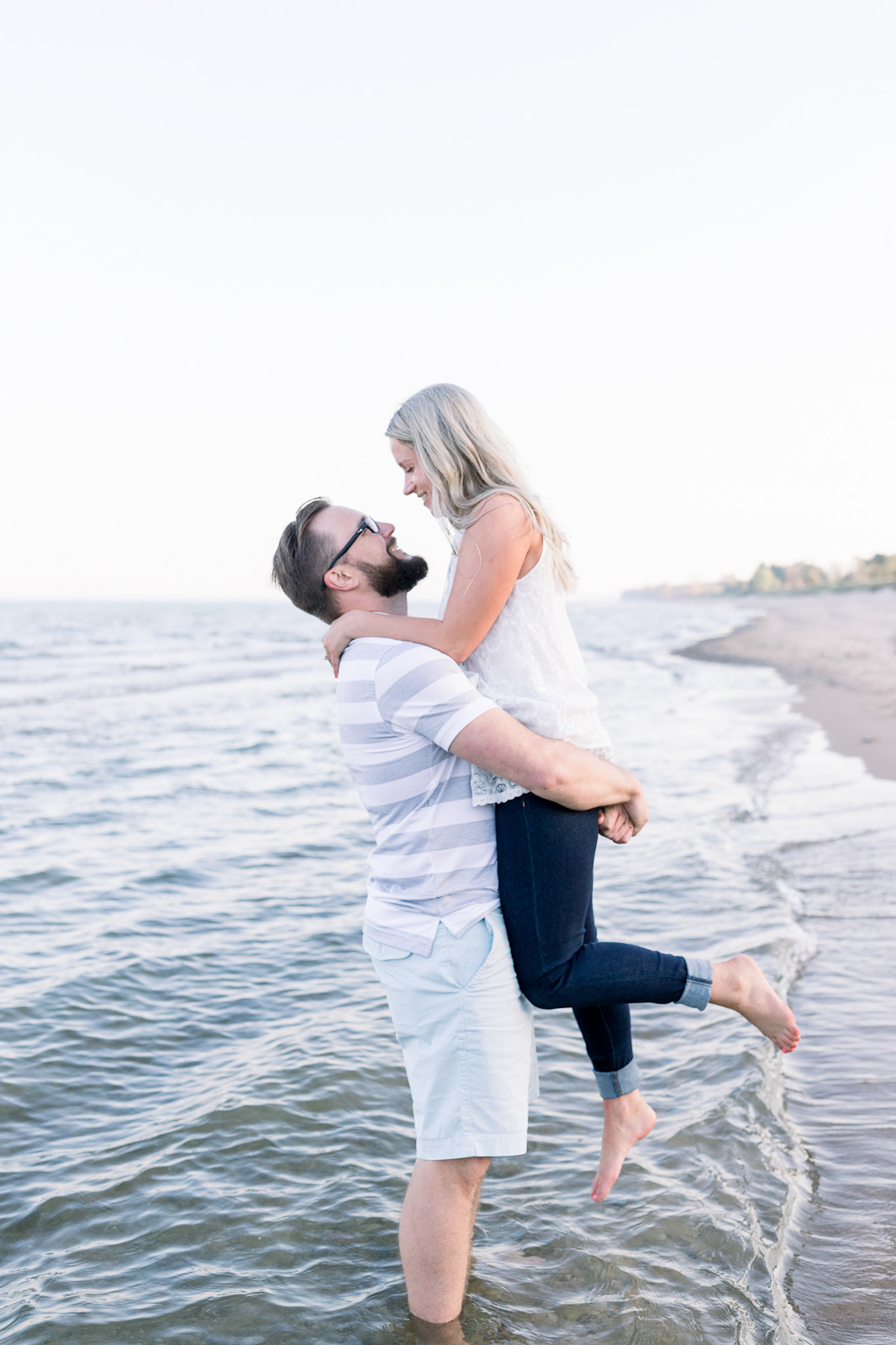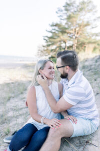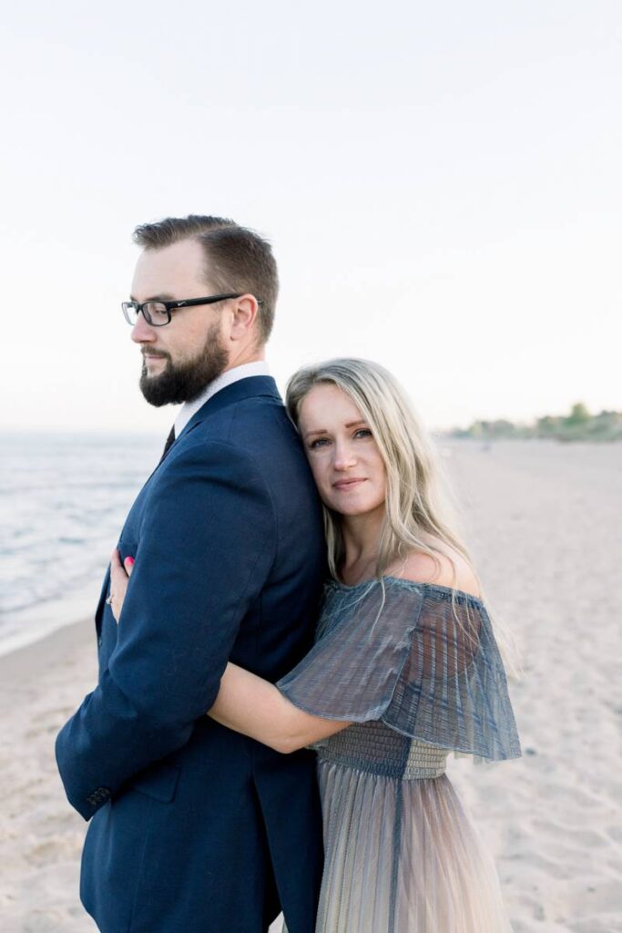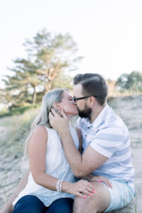 HOW DID YOU CHOOSE THE LOCATION OF YOUR SESSION? Our photographer, Sarah Larson Photography, suggested it, and we’re so glad she did! It was the perfect location for a beachy and romantic engagement session in Sheboygan!