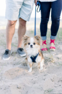 A simple yet elegant, beachy engagement session on the shores of Lake Michigan in Sheboygan, Wisconsin, was exactly what now newlyweds Kait and Alex wanted! This adventurous couple joined Sarah from Sarah Larson Photography for their engagement photos this past May, even bringing their furry friend along to join in on the fun! Scroll to see the sweetest love between these two cuties and hear about the incredible proposal that kicked off the start of their forever!