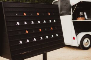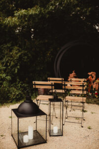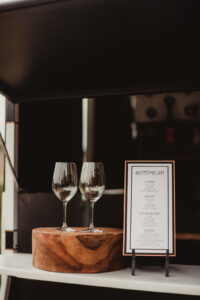 Notice just a few of their rental options throughout, such as their new mobile bar horse trailer, tables, chairs, ceremony backdrop, chargers, dinnerware, decor, and MORE! We love the modern and simplistic foundation their pieces provide for the rest of the vibrant details and woodsy scenery to shine!