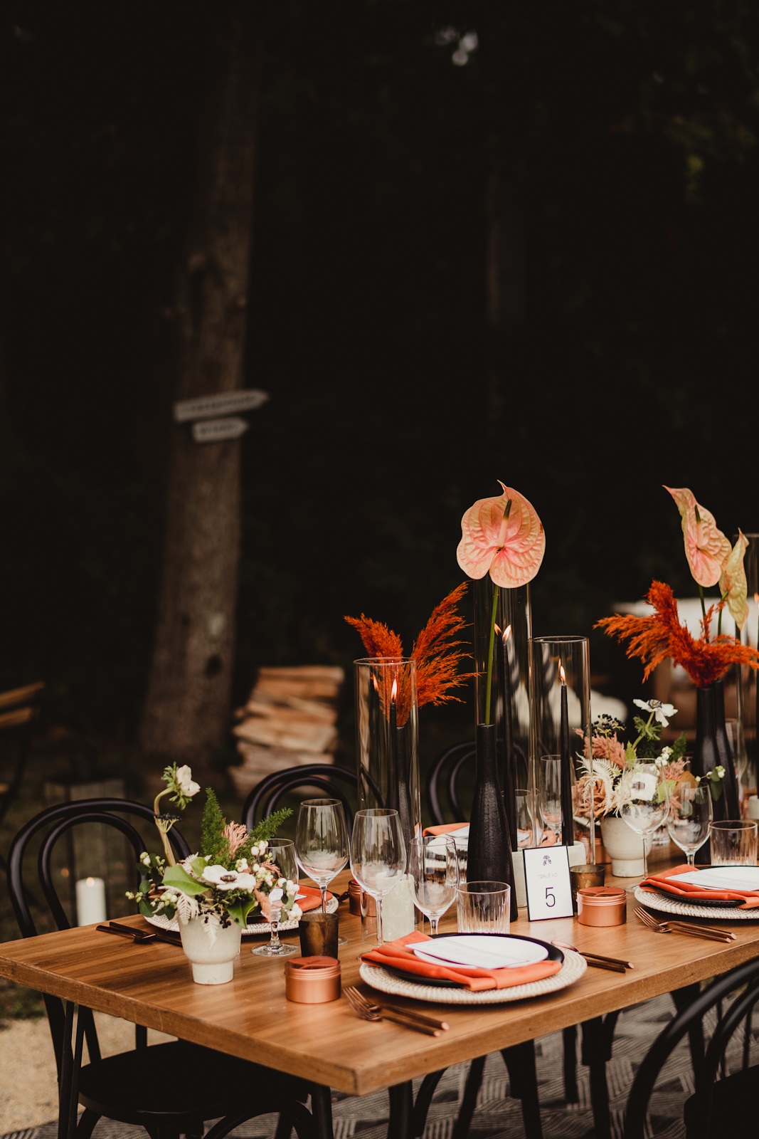 SLEEK MODERN BLACK + WHITE MOODY FALL CAMPGROUND STYLED SHOOT WITH A VIBRANT TROPICAL TWIST