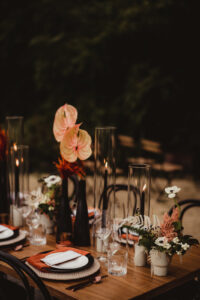Ever wonder what a sleek and modern wedding style meets woodsy campground with a vibrant and tropical twist would look like all put together? Well, there’s no more need to wonder because, on today’s blog, we’re showing you how Event Essentials and A La Crate created that blend with absolute perfection! As always, EE + ALC are better together, and today’s design proves that once again.