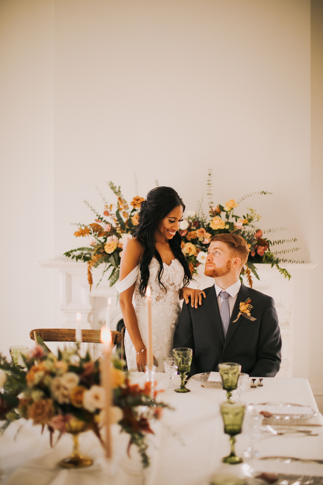 Over lavish tablescapes with stationery designed by Euphloria Studio, with two different whimsical inspired bridal gowns, and on antique velvet couches, the love between Tanesha and Mason radiated.