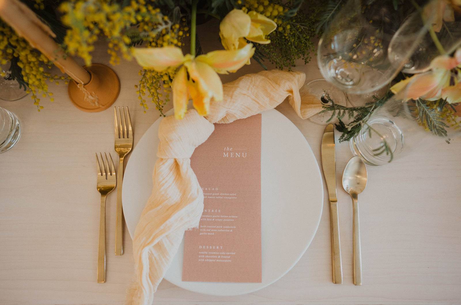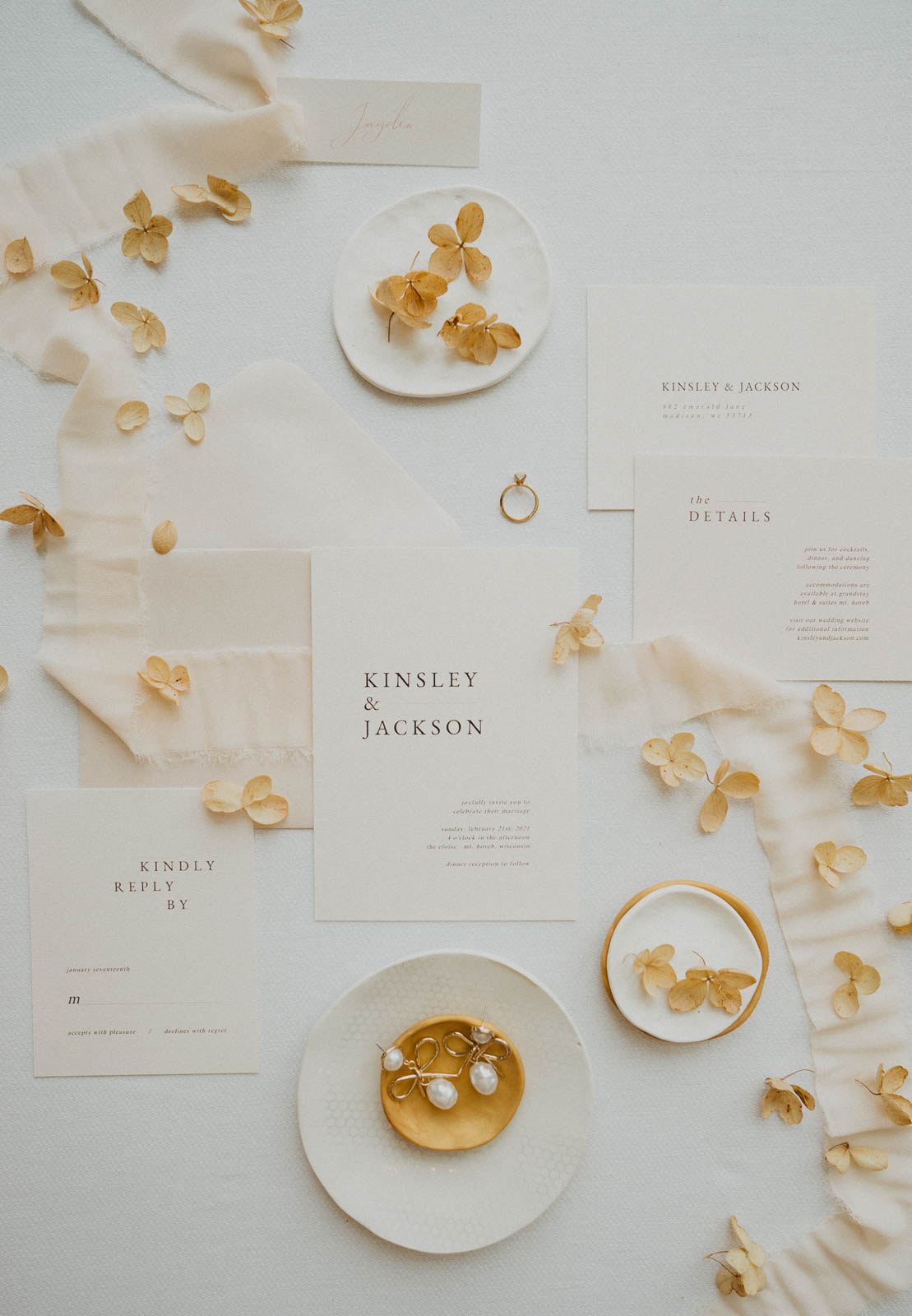 Delicate details and raw, earthy textures adorn this scape, and we love the soft, whimsical stationery Niki Press Designs created to welcome us into this honey-toned scene.