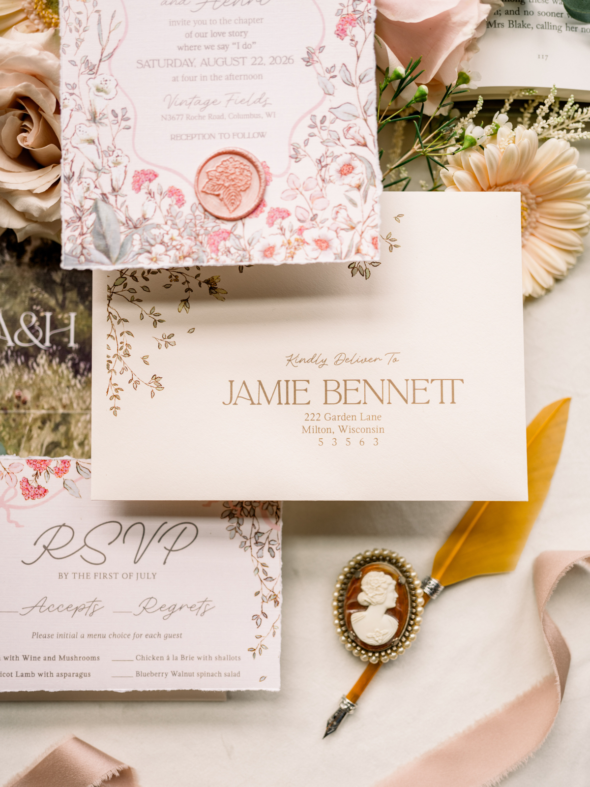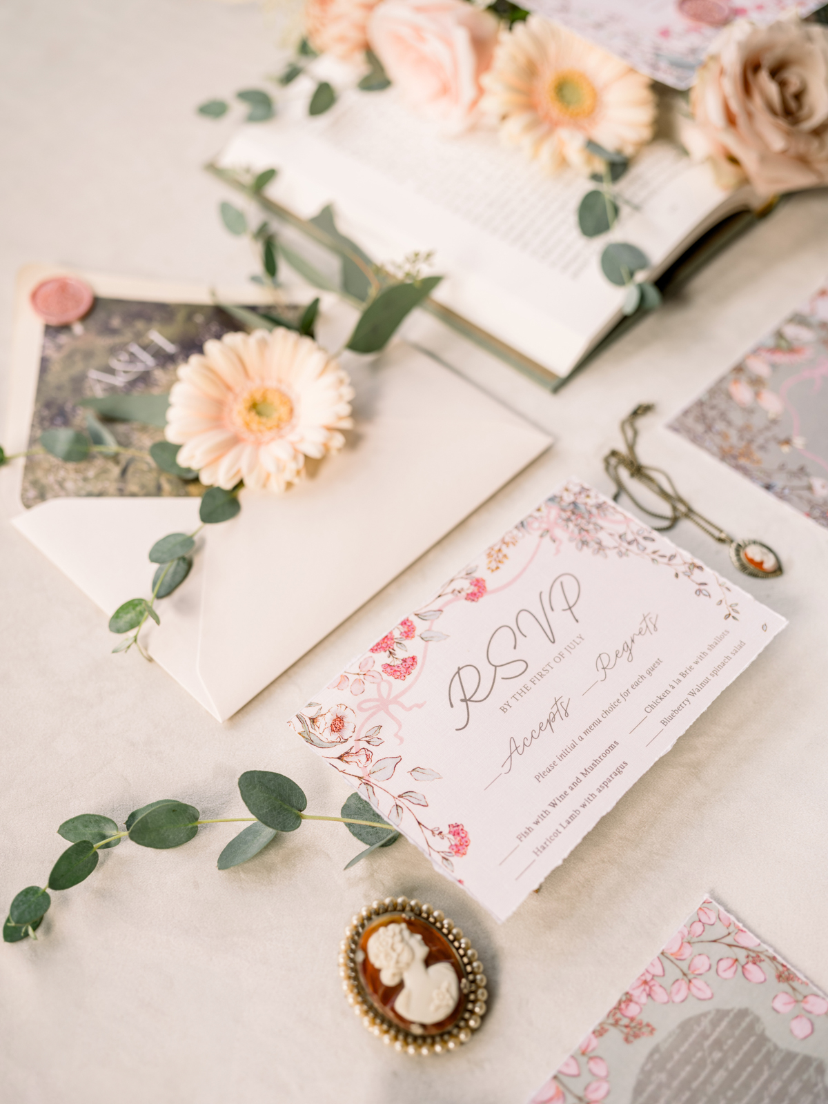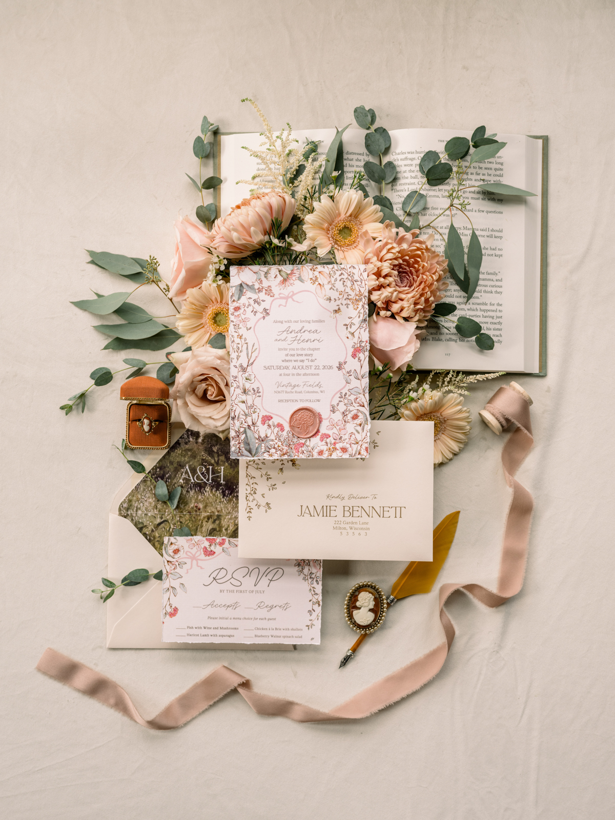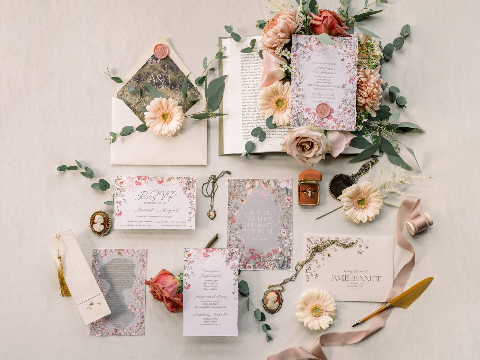 Larissa Marie Photography beautifully captured this literary-inspired wedding design, bringing its soft, romantic details to life through their timeless photography and videography.