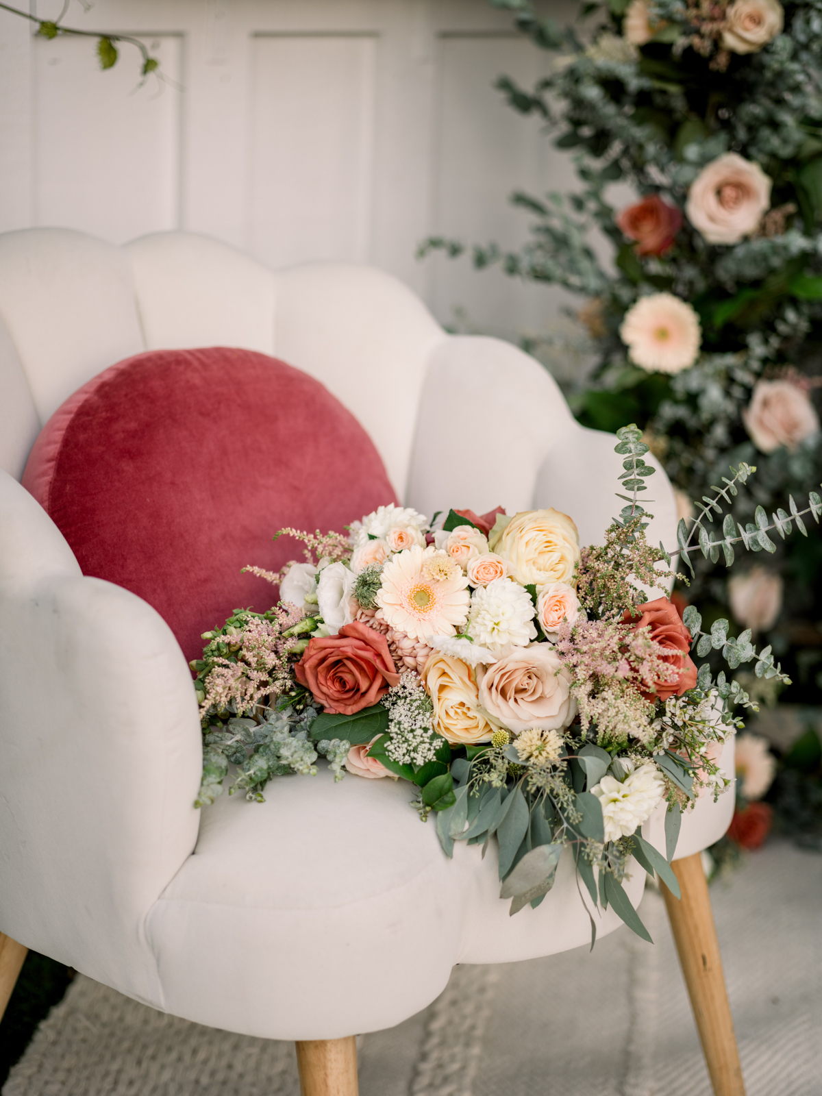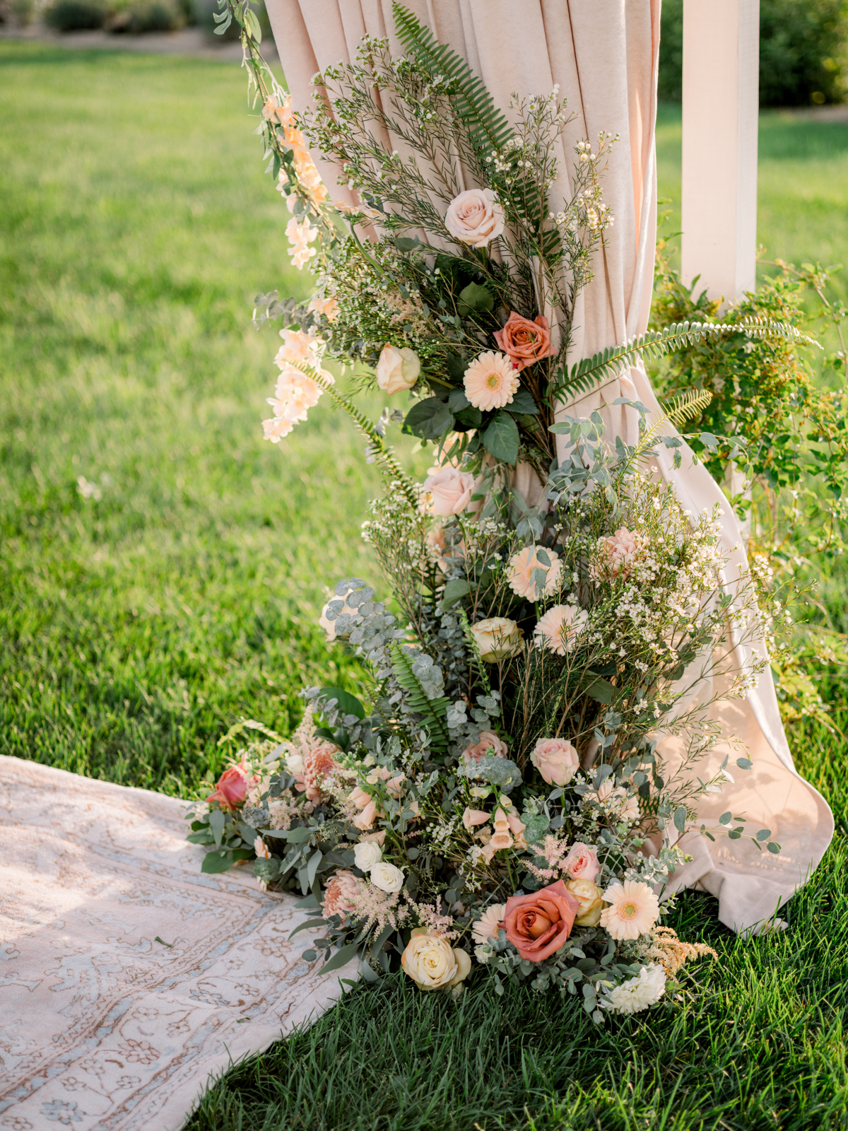 Opal Market Flowers filled every corner of the celebration with enchanting floral arrangements, artfully blending soft pink and cream blooms with lush greenery for a textured and romantic