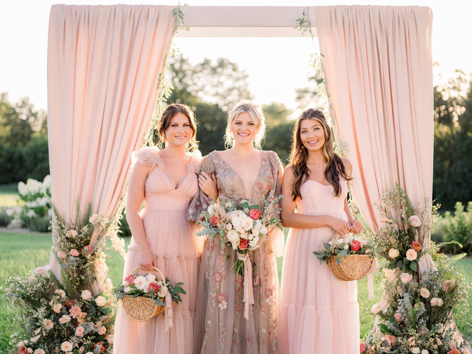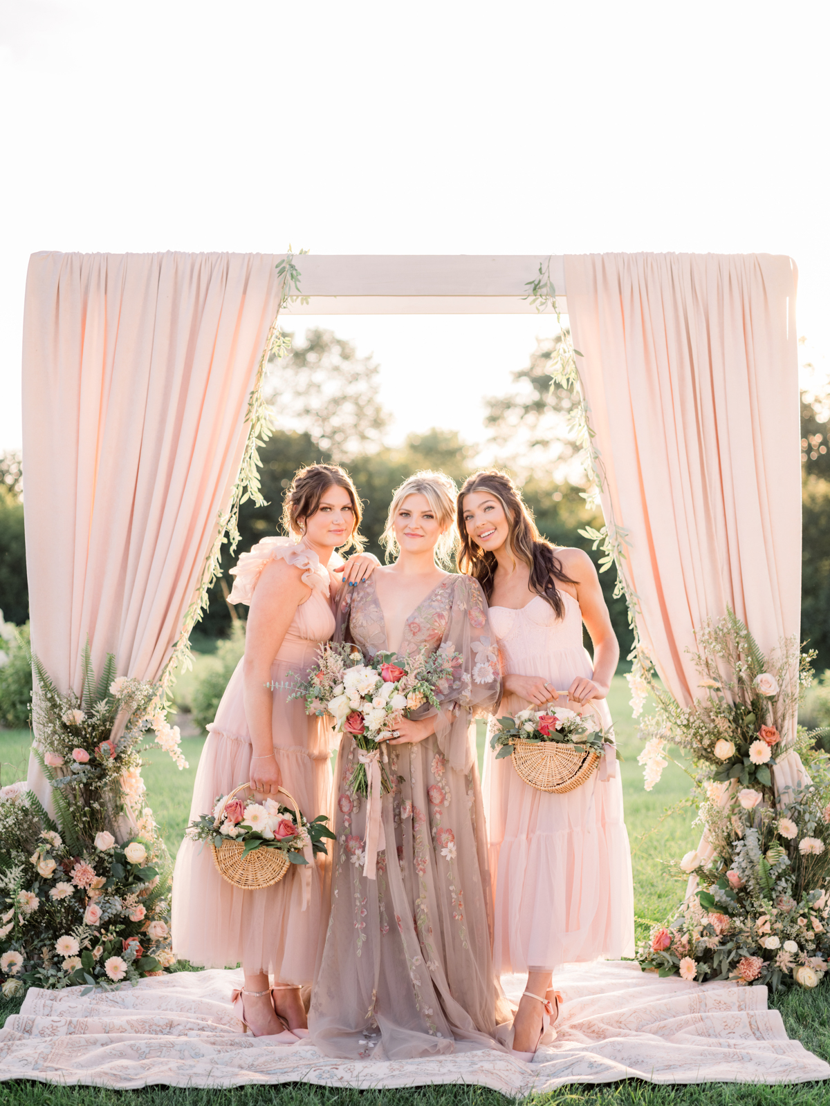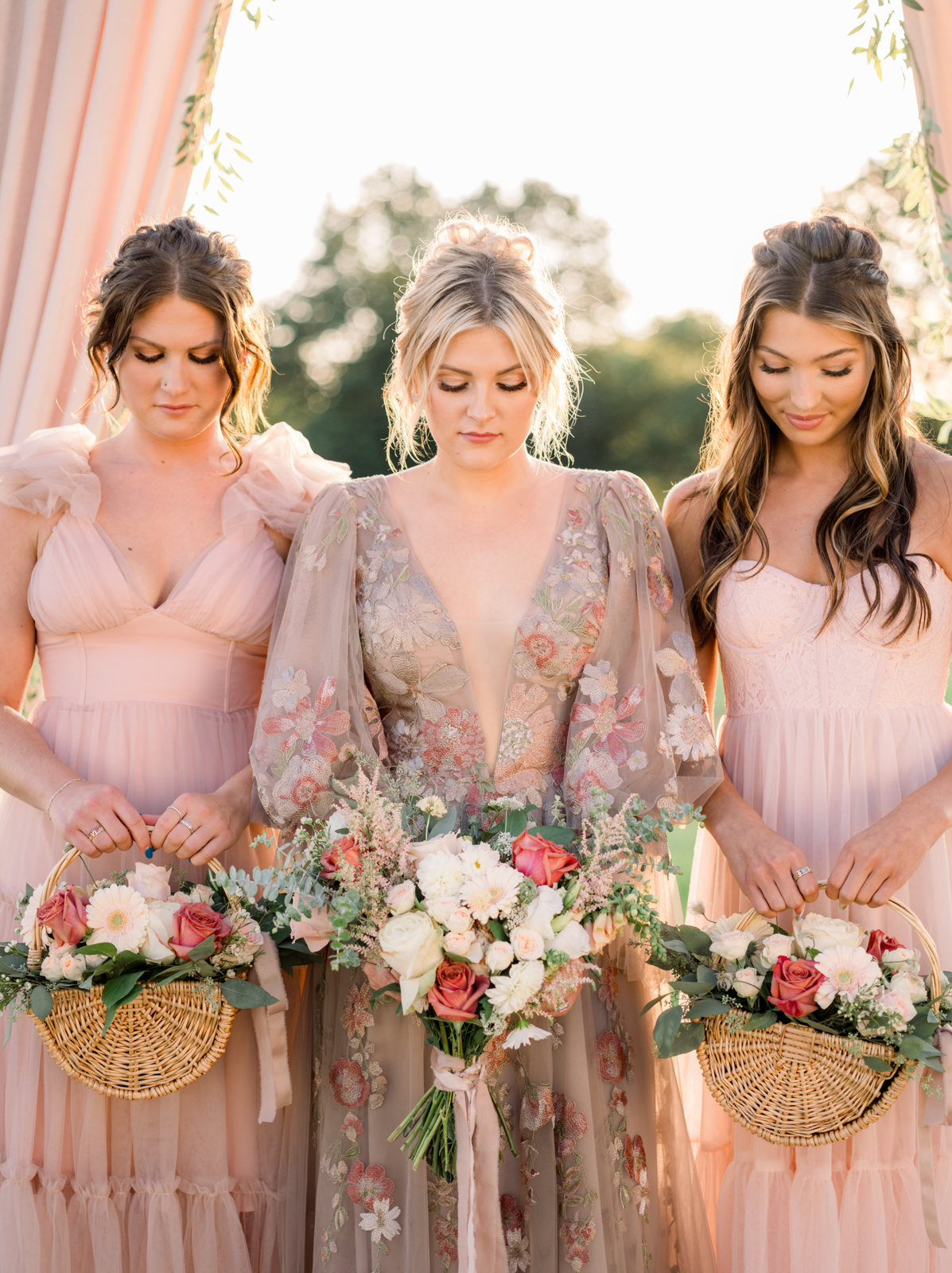 look. Unique woven basket bouquets for the bridesmaids added an extra layer of charm to the whimsical scene. Every arrangement, both big and small, was thoughtfully designed to enhance the literary-inspired theme, creating a cohesive and dreamy atmosphere that felt elegant and timeless.