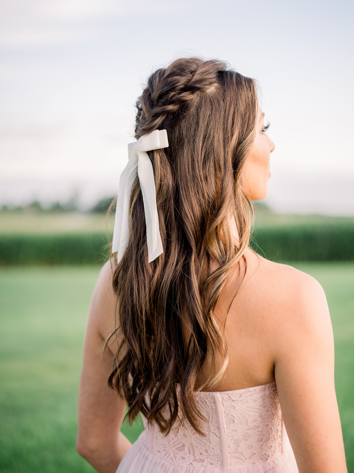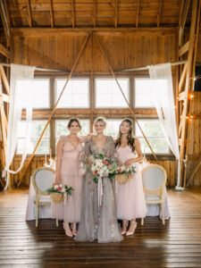 Allure Artistry worked their hair and makeup magic on the bride and both bridesmaids, weaving soft, romantic textures into their hair for an effortlessly beautiful and organic look. Both bridesmaids wore braids, one styled with loose waves and the other in an updo, accessorized with delicate bows. For makeup, Allure Artistry focused on giving each of the ladies a glowing complexion, with washes of shimmer on their eyelids and a soft kiss of color on their lips to create a fresh and natural wedding day look.