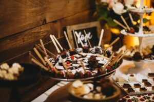 Our ring box was made from wood with our names on it, as well as our welcome board that everyone could sign instead of a guestbook. Something very important to us was to have a tribute to our parents, who have both been married over 30 years. When you entered The Fields Reserve there is an old dresser with two wine barrels on either side. I had extra lace from my wedding dress that I laid over the dresser and we placed a picture of each of our parents on their wedding day on top, along with a sign that said: “All because two people fell in love.”