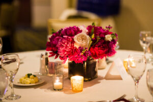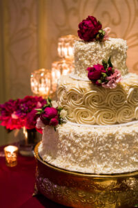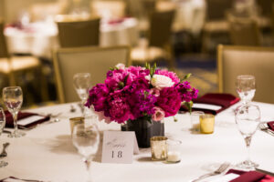 A wedding with pink and burgundy peonies dotting the bouquets and centerpieces designed by Flora Designs by Jamae, a three-tiered cake from Craig’s Cake Shop, and chic tablescapes with rentals from Event Essentials dripping in candlelight all made for one modern ballroom affair at Madison wedding venue, the Park Hotel. Dive into this glamorous day with a Capitol view all captured by Errin Hiltbrand Photography and a highlight film too!