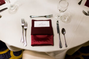 DID YOU USE ANY SPECIALTY CHAIRS, LINENS, TABLES OR DINNERWARE? We had gold chargers and the Park Hotel has wonderful gold chairs so we just used those.