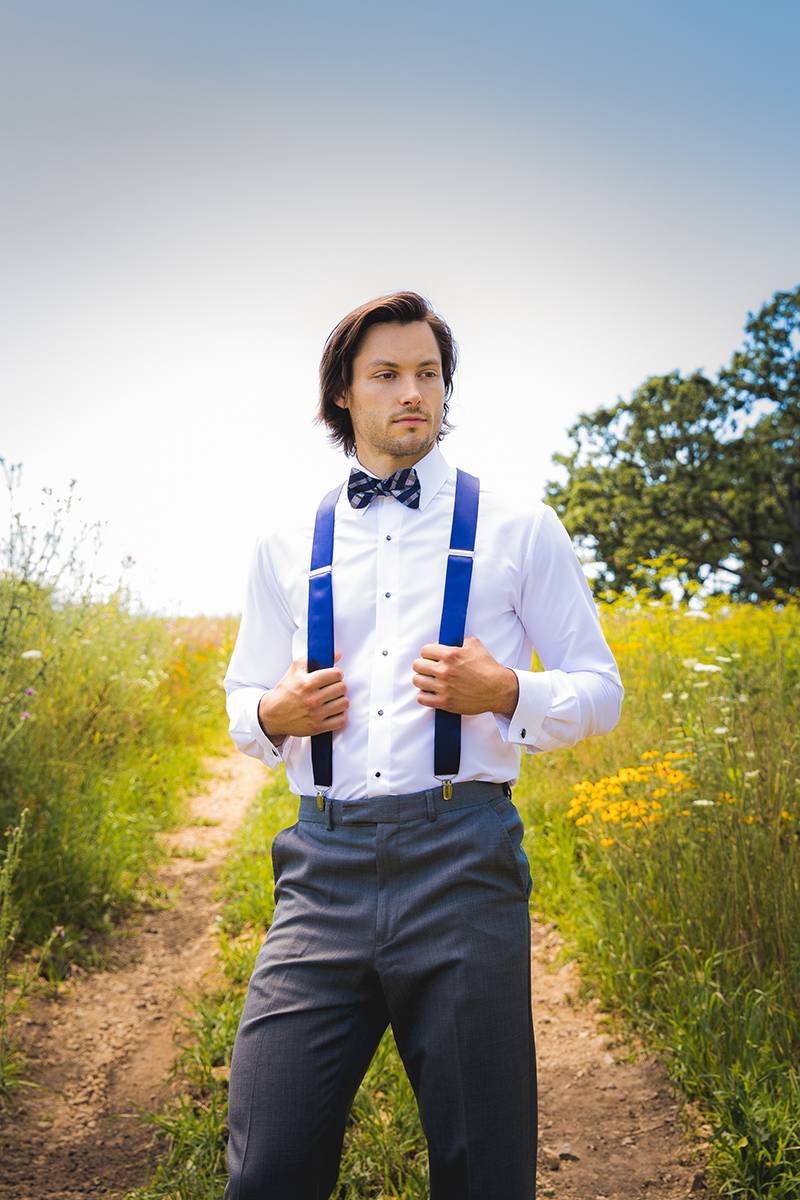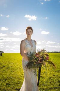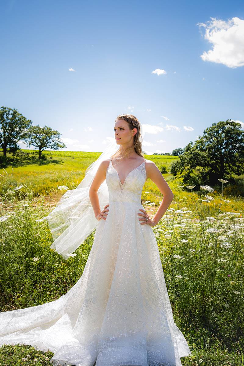 A new year and new stunning wedding fashions from local Madison bridal shops for 2019 that were featured in our new issue of Wedding Planner & Guide magazine. Whether you’re a modern bride, an edgy bride or boho is more your style – there is a dress here for everyone from Brandi’s Bridal Galleria, Etc. and Vera’s House of Bridals – paired with pretty florals from Simply Glamorous Designs at Oregon Floral with hair and makeup from Temptd Salon & Spa. And you can’t forget your groom! Be sure to check out these dapper suits from Nedrebo’s Formalwear in a classic black suit to navy, plaid or a more casual look with suspenders and a bow tie. See all the imagery below from The Wedding Flashers, amongst the summer landscape of wildflowers at White Oak Savanna.