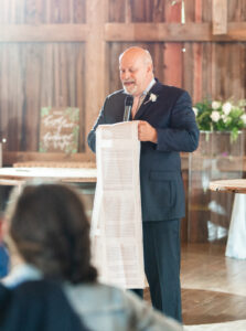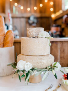 TELL US ABOUT THE FOOD, DESSERT, AND ANY SPECIALTY BEVERAGES ON THE MENU: Our food was absolutely amazing – Gracious did an outstanding job! We had a huge cheese and charcuterie spread, with a “cheese” cake thanks to our excellent wedding planner Ashley! Our passed hors d’oeuvres included crispy pork belly with pineapple salsa, stuffed date rumaki with aged balsamic reduction, goat cheese croquette with black pepper truffle honey, and grilled shrimp avocado bruschetta. For dinner, we had summer salad with grilled peach, heirloom tomato, burrata, arugula with balsamic vinaigrette, grilled tenderloin with mushroom demi-glace, roasted fingerling potatoes, summer green beans with shallot butter, and grilled Amish chicken with lemon herb salsa, nutty farro with grilled asparagus and grilled corn. Our dessert included butterscotch pot de crème with bourbon caramel and toasted hazelnuts, bourbon-spiked dark chocolate milkshake cordials with French truffles, and key lime tarts with ginger-whipped cream and berries. For our late night food, we enjoyed chicken and waffles with spicy maple syrup. We also did specialty cocktails named after our two dogs – “The Little Gentleman” in honor of our Boston Terrier Henry, which included vodka, cranberry juice, grapefruit, and “Lilly’s Frosé” in honor of our Shepherd mix. We also brought in a case of viognier, the state grape of Virginia, from our favorite Charlottesville winery.
