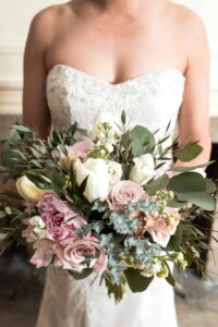 DESCRIBE YOUR WEDDING FLOWERS: Local spring blooms.