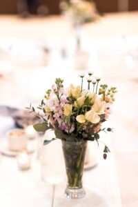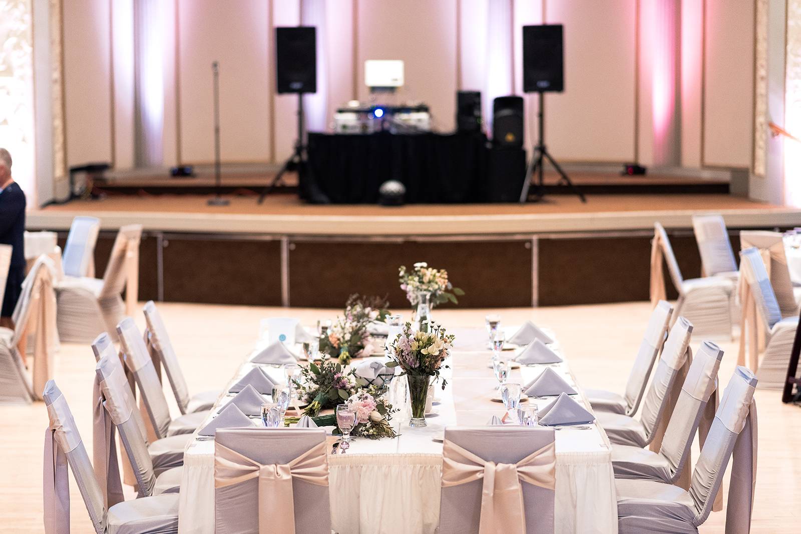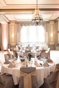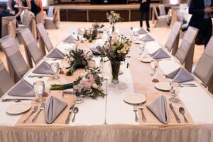 DID YOU USE ANY SPECIALTY TABLES, CHAIRS, LINENS OR DINNERWARE? We used Event Essential’s chair covers, ties, and table runners.