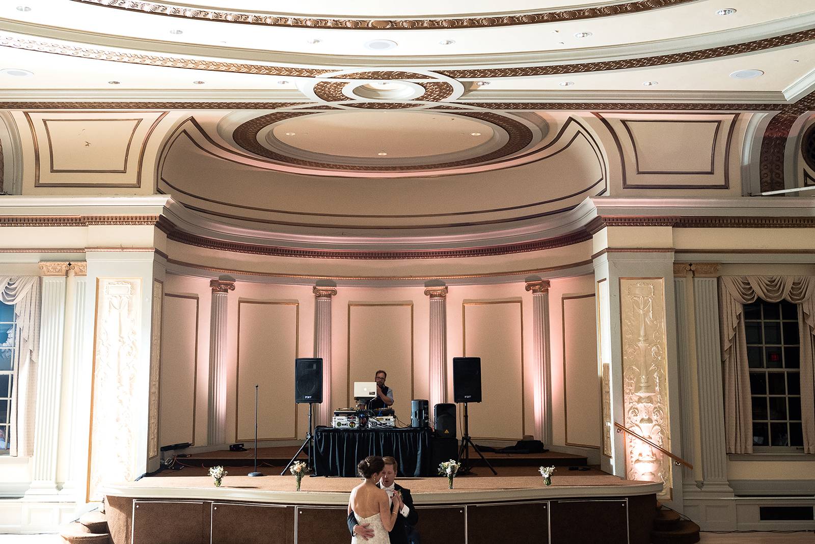 WHAT WAS YOUR WEDDING COLOR PALETTE? Silver, blush, and champagne.