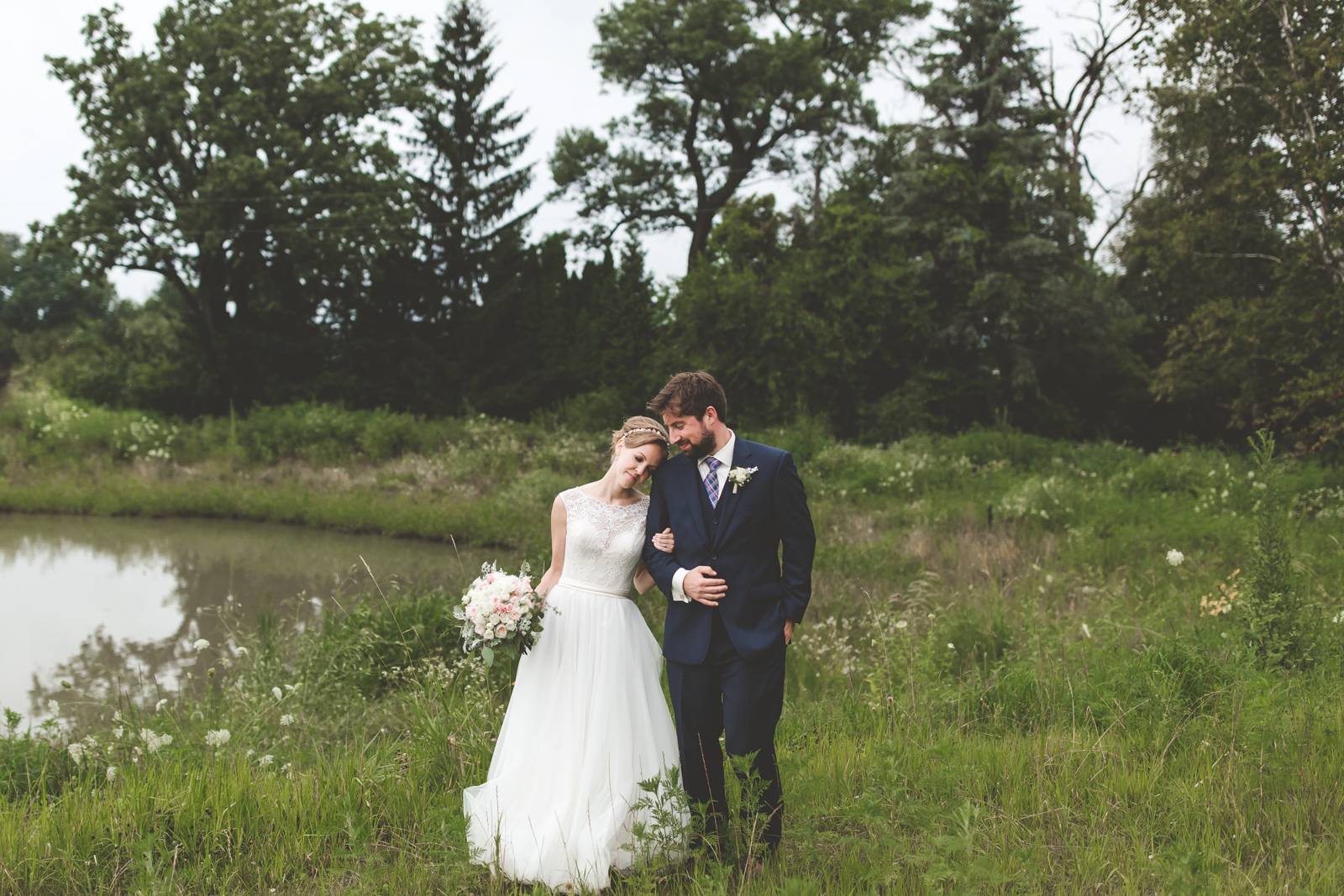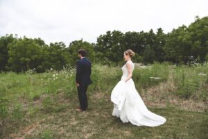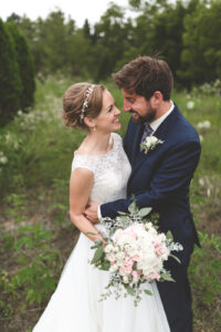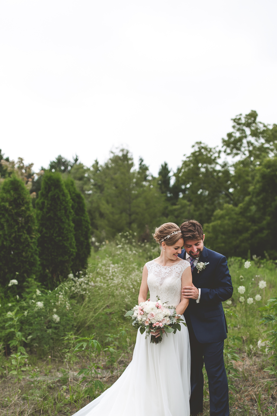 Lauren and Ryan’s wedding day was full of meaningful details and sweet moments with family and friends at The Fields Reserve near Madison, Wisconsin. With lawn games and sweet treats aplenty, we’re kind of wishing we got to see this one in person! The bride glowed in a Vera’s House of Bridals gown with a lace bodice on an A-line silhouette featuring a bateau neckline. Her groom sported a Men’s Wearhouse Classic Fit suit in navy with a navy and mauve plaid tie. A classic mix of soft pink and dreamy florals styled by Simply Glamorous Designs at Oregon Floral. All of these lovely details were photographed beautifully by East Elm Photography.