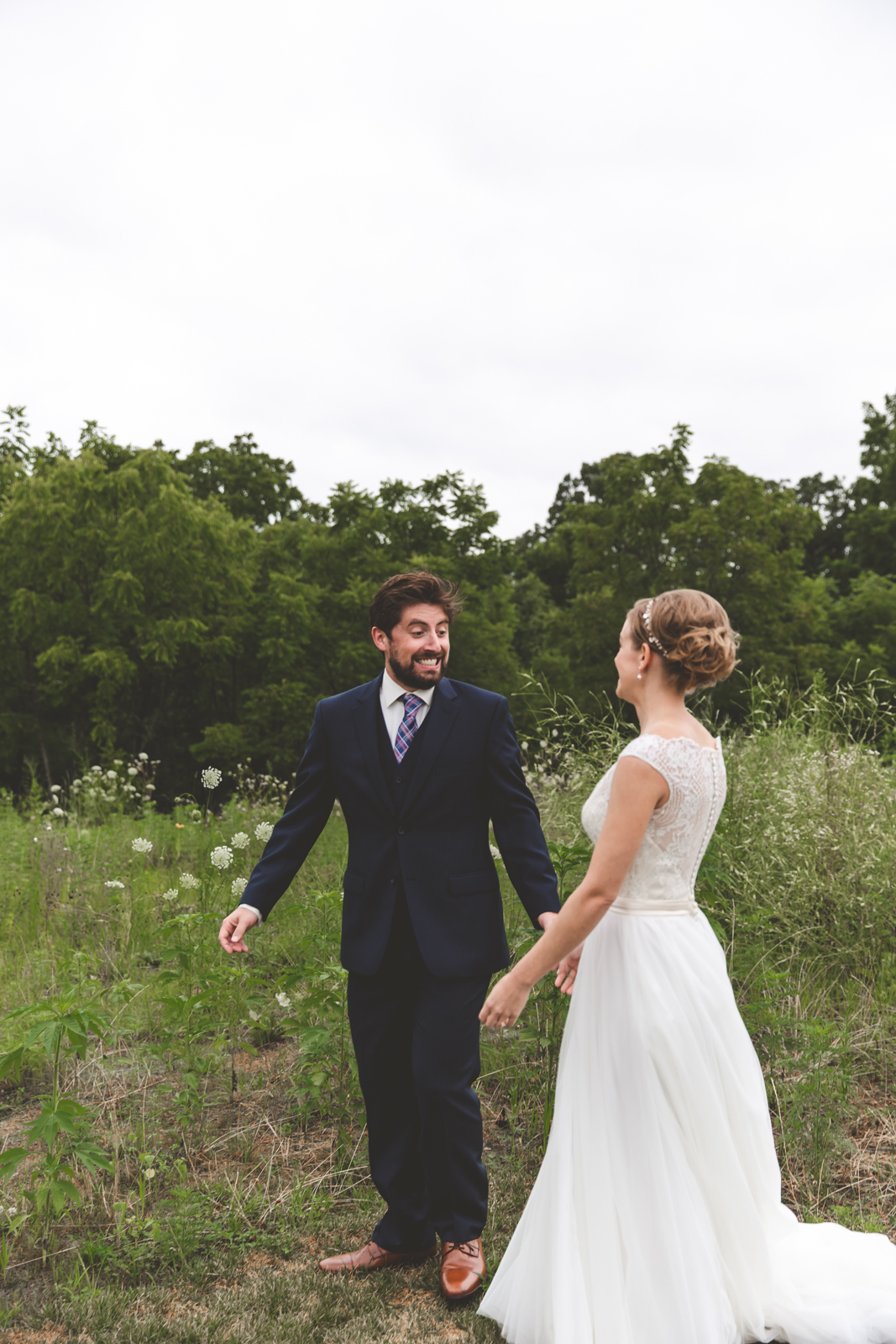 LAUREN: We met online! We sent (very long!) messages back and forth for a few weeks before Ryan asked me to meet for coffee. We knew from our exchanges we had a lot in common and that we could make one another laugh. Neither of us was willing to commit to a dinner date just in case the other turned out to be a weirdo, so the coffee meet-up was a test. We passed! Our conversation was fun and easy, so we set up a real date later that week. We were hooked. 🙂