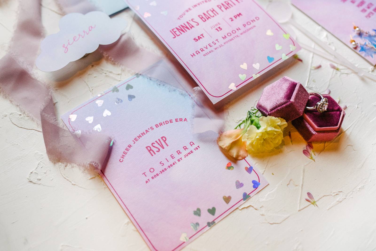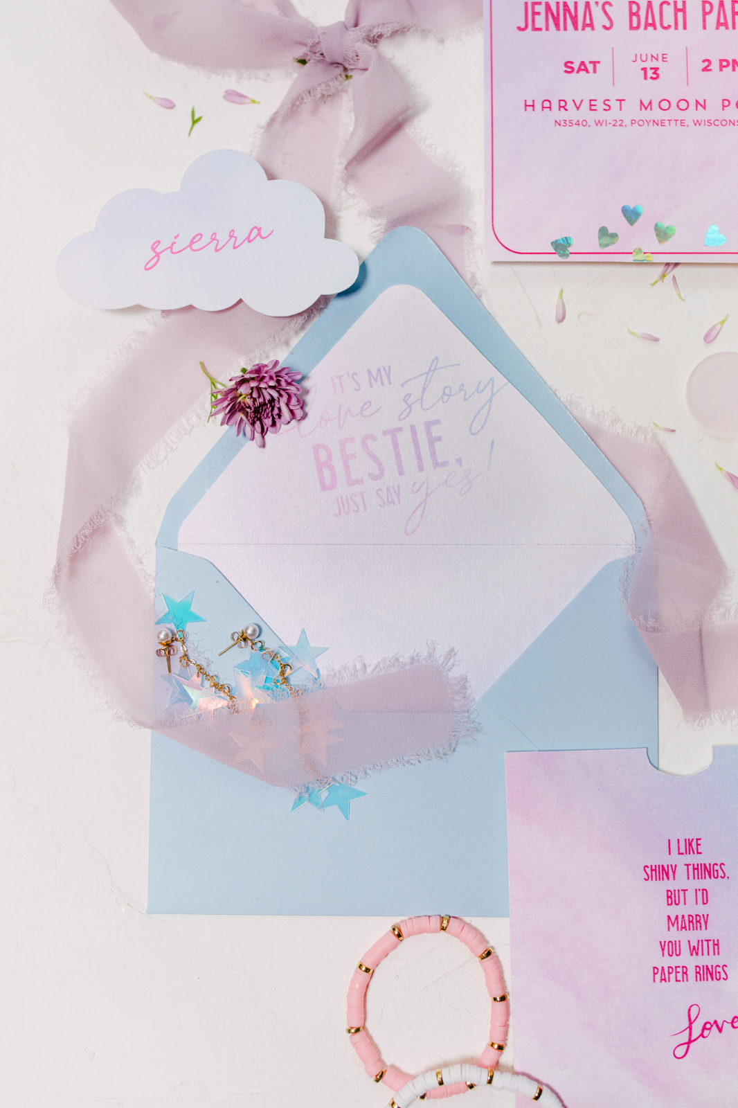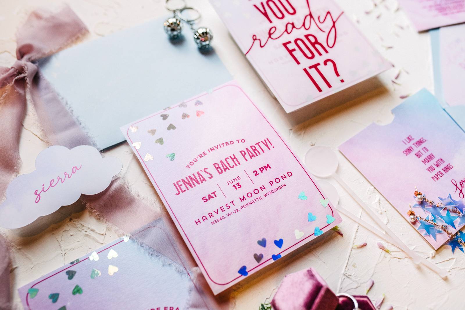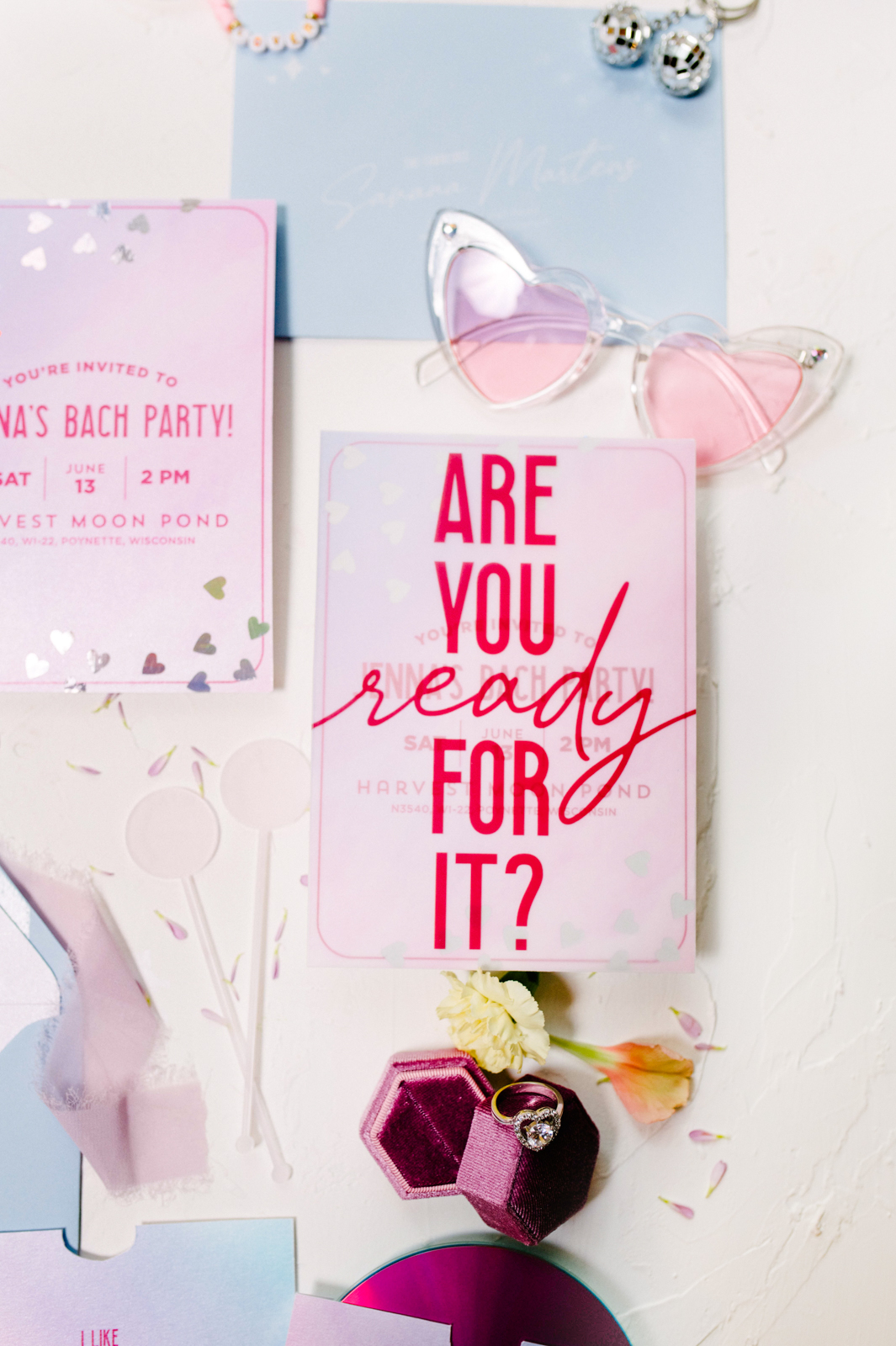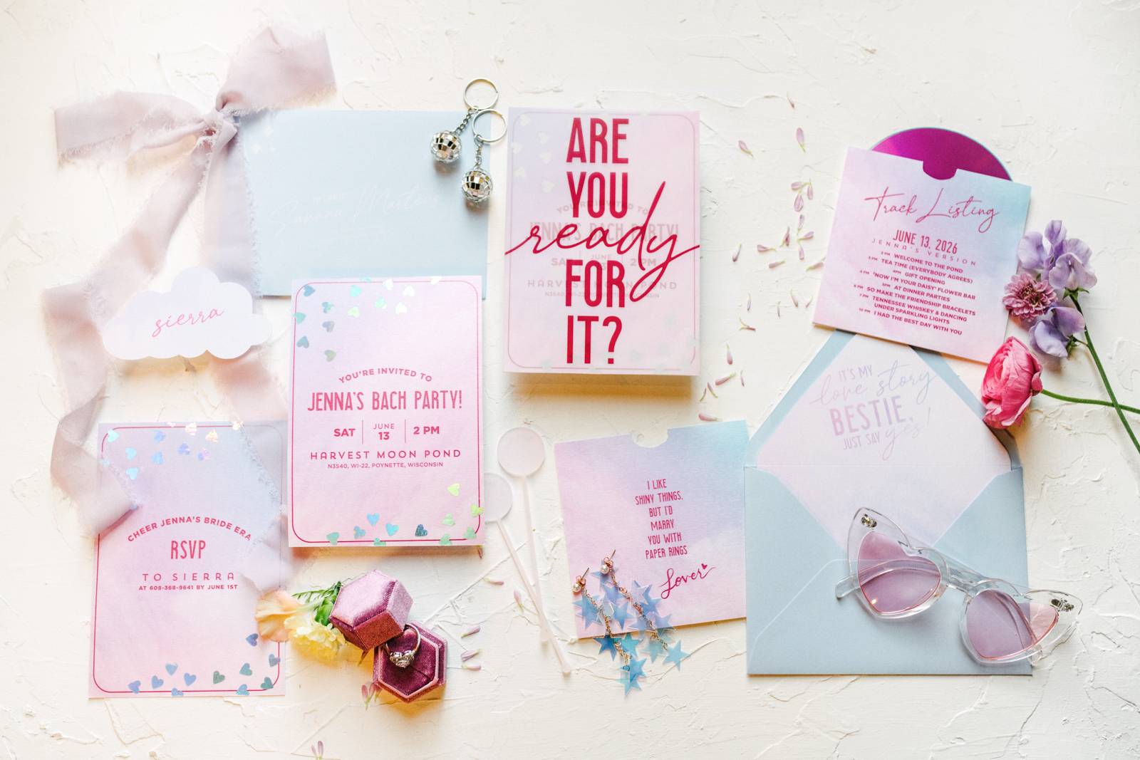 Calling all Swifties! If you're engaged and ready to celebrate with your closest crew, what better way to kick off your own "Love Story" than with a Taylor Swift Lover-themed bachelorette party? The Lover era is all about embracing joy, romance, and the magic of being in love – perfect for a bride-to-be living her own fairytale! With its dreamy pastel color palette, glittering accents, whimsical clouds, and playful, heart-filled details, this theme captures all the bliss and excitement of being engaged.