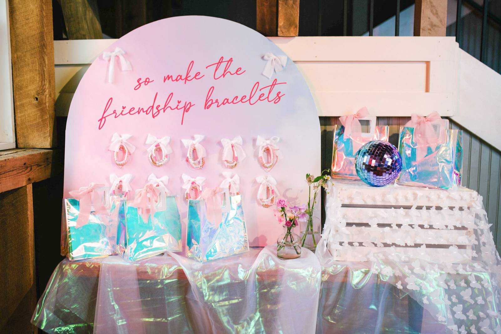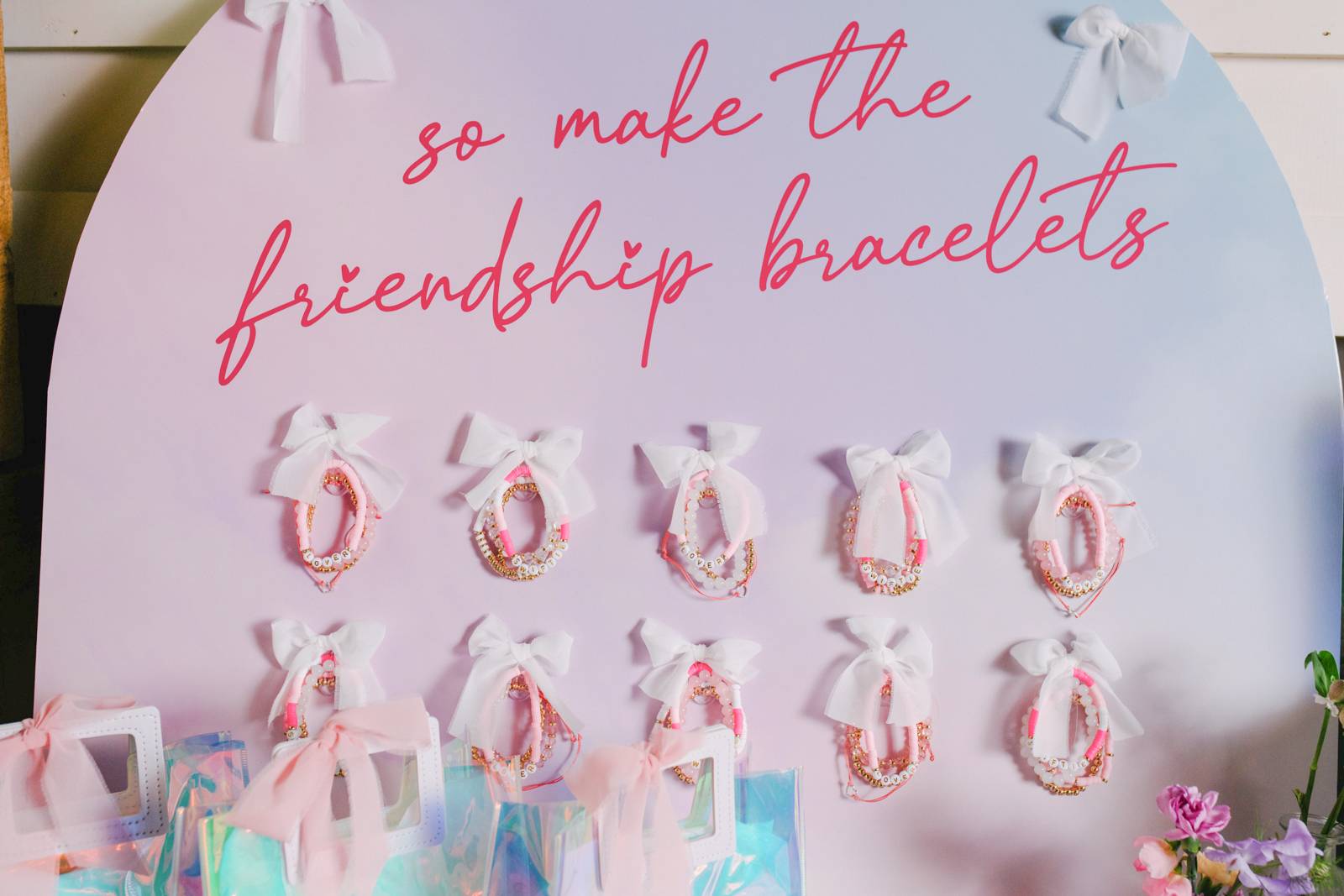 What would a Taylor Swift-themed party be without friendship bracelets? These iconic accessories doubled as party favors for a personal and nostalgic element to the day!
