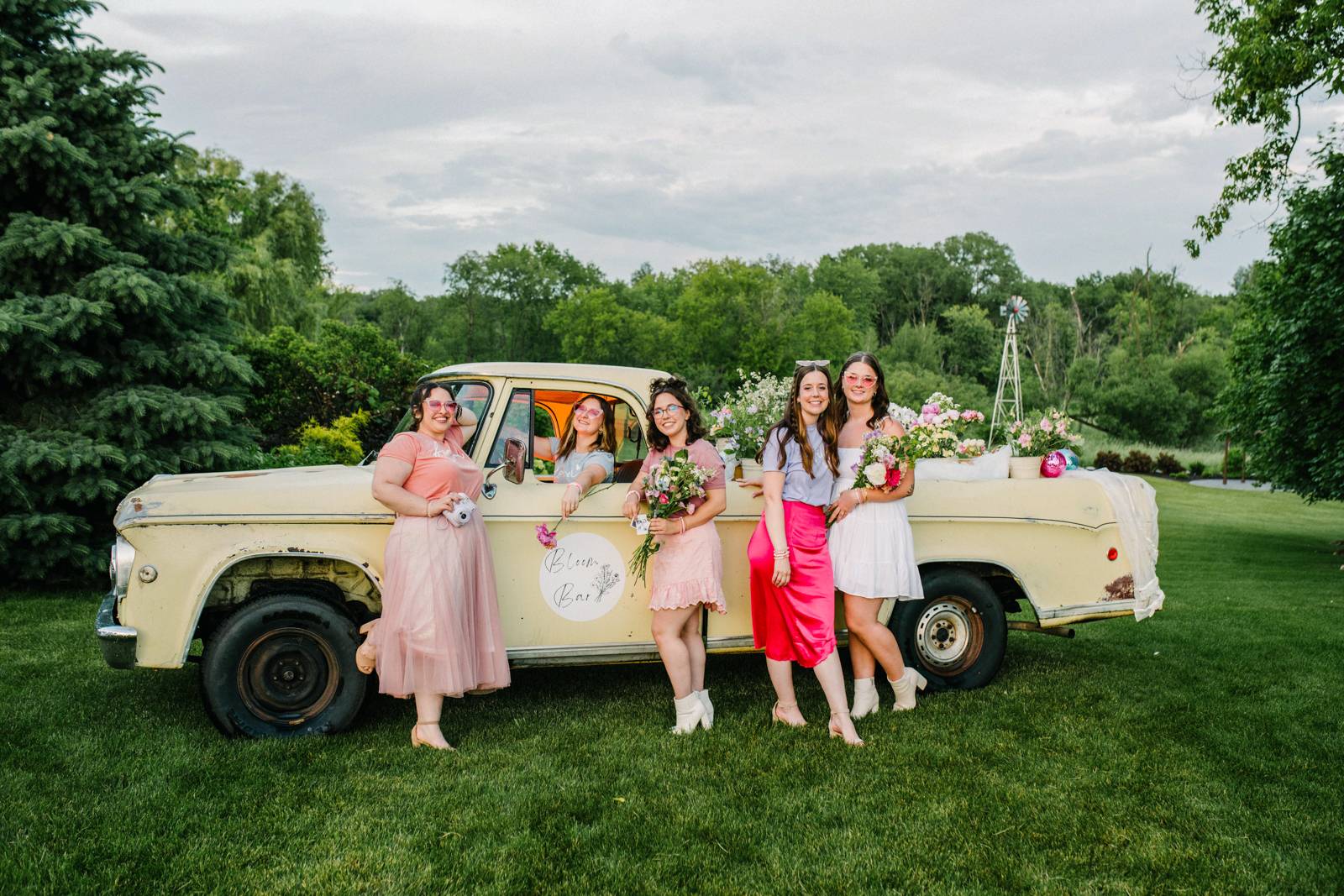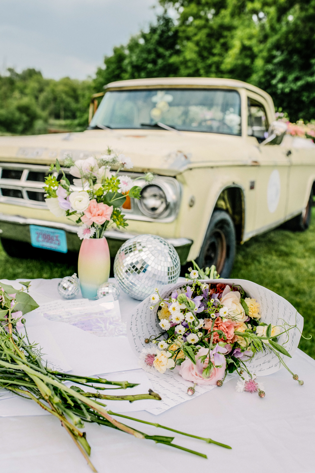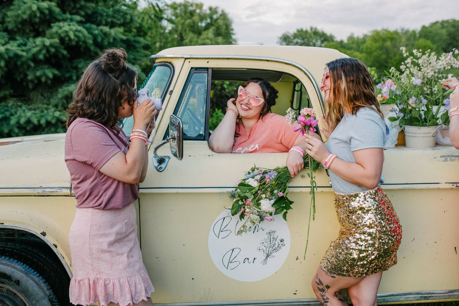 Mobile Mini Trucks added a fun, floral twist to the bachelorette party with their charming pale yellow vintage truck, which served as the “Getaway Bar” and the perfect spot for photo ops! Guests got creative, DIY-ing their own beautiful bouquets to take home. Sourcing their flowers from local farms and gardens, Mobile Mini Trucks also sprinkled their floral magic throughout the rest of the party with vibrant, locally grown arrangements that tied the entire celebration together in a fresh and whimsical way.