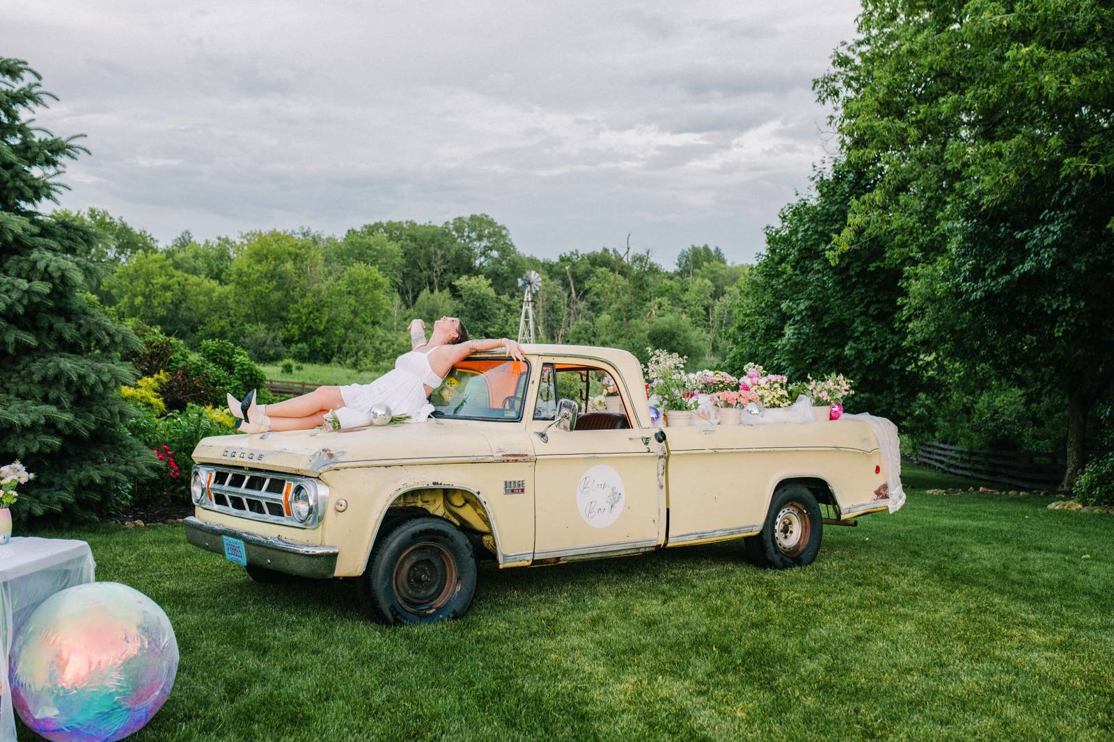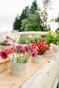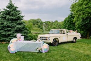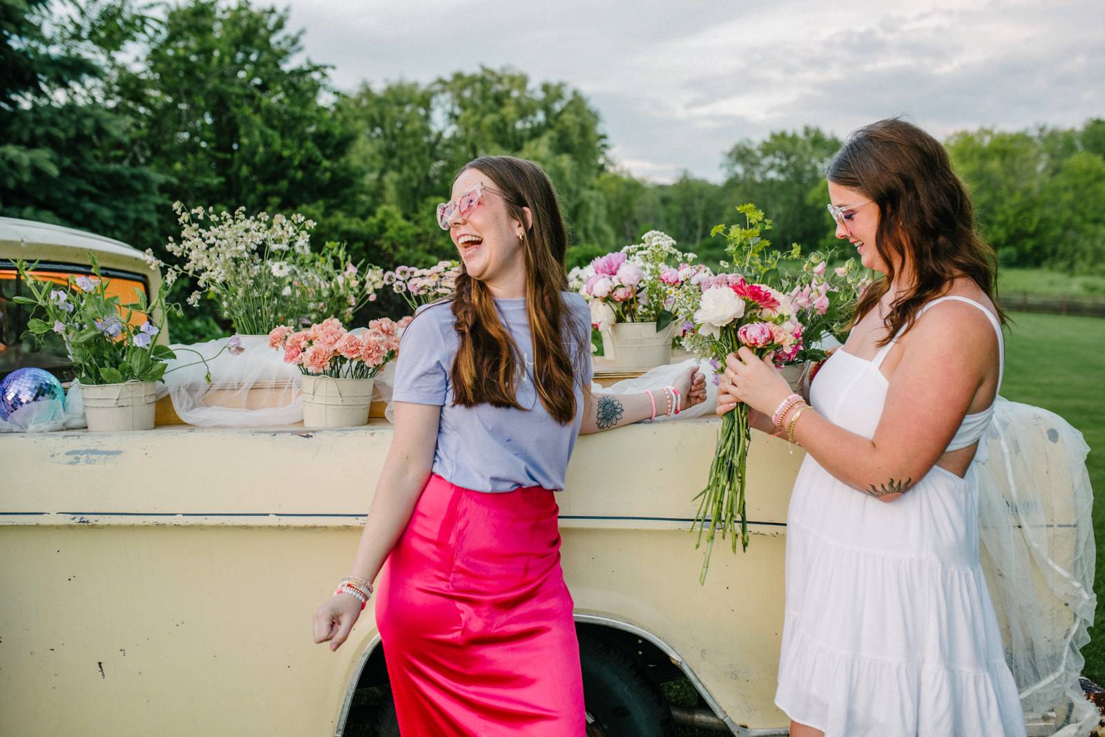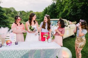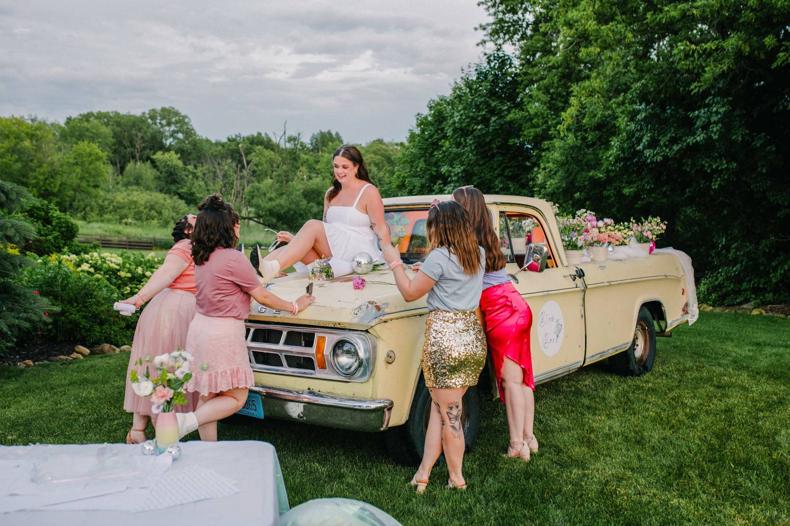 Mobile Mini Trucks added a fun, floral twist to the bachelorette party with their charming pale yellow vintage truck, which served as the “Getaway Bar” and the perfect spot for photo ops! Guests got creative, DIY-ing their own beautiful bouquets to take home. Sourcing their flowers from local farms and gardens, Mobile Mini Trucks also sprinkled their floral magic throughout the rest of the party with vibrant, locally grown arrangements that tied the entire celebration together in a fresh and whimsical way.