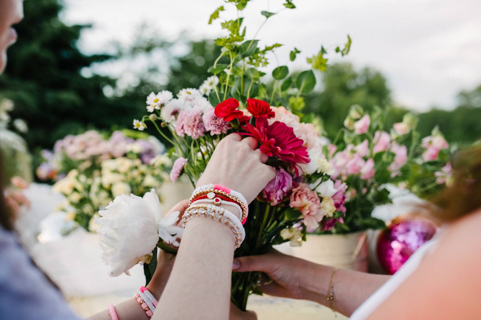 In collaboration with LK Bridal StudioHarvest Moon Pond, Azena Photography, Food + Cake Wedding Films, Mobile Mini Trucks, Sugarsmith, Sandy Kakes, Aerial Balloons & Backdrops, Rooted Culture, and Event Essentials, get ready to be inspired by all the flowers, friendship bracelets, and FUN below! Are you ready for it?
