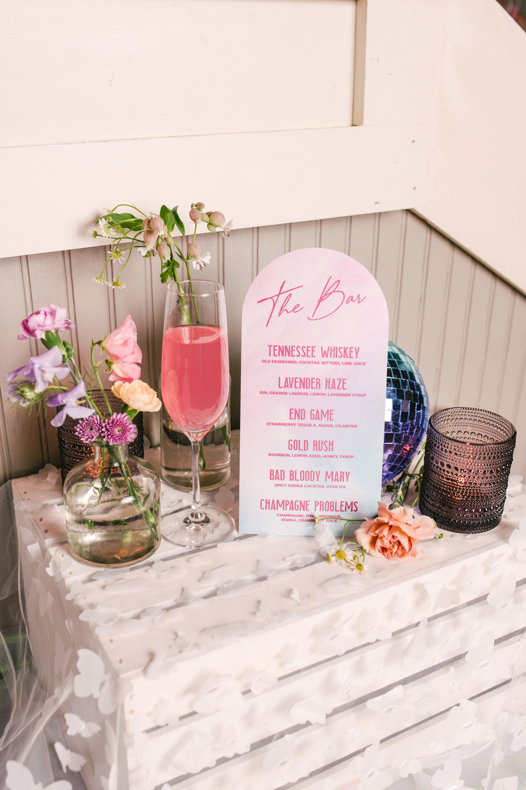 Raising their glasses in a toast to the bride-to-be, everyone enjoyed drinks from the lyric-themed bar menu, including creative beverage options like Tennessee Whiskey, Lavender Haze, End Game, Gold Rush, Bad Bloody Mary, and Champagne Problems.