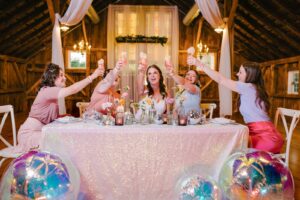 Harvest Moon Pond served as a magical venue for this bachelorette party inspiration, providing a picture-perfect backdrop that set the stage for an unforgettable day. Most of the festivities took place in their charming barn, where rustic vibes mingled with playful Lover-themed decor. The seamless blend of indoor and scenic outdoor settings allowed everyone to soak in the beauty of the surroundings while enjoying every unique aspect of the celebration together.