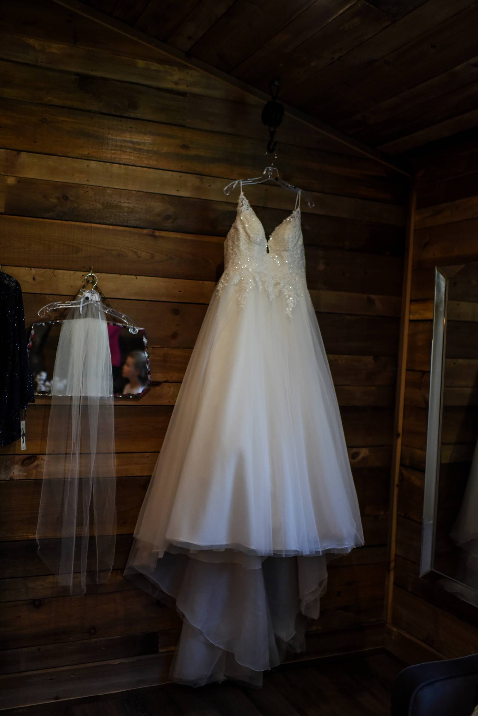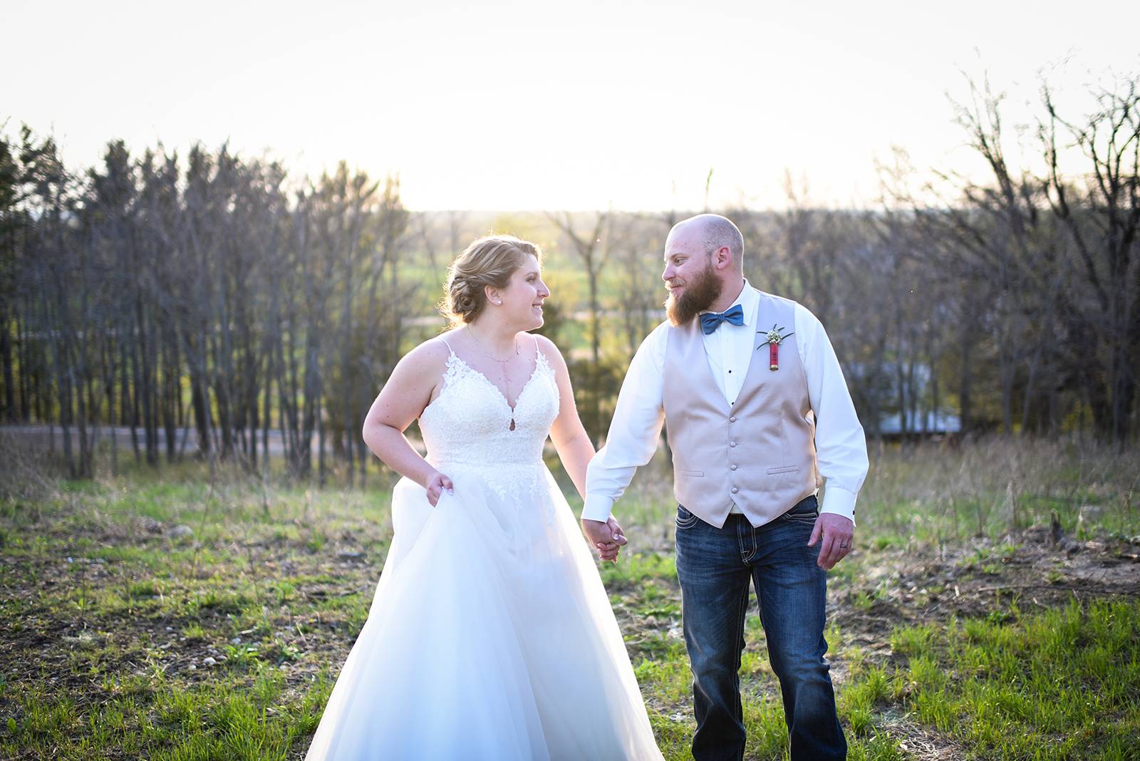 TELL US ABOUT FINDING YOUR DRESS: My mom, Jake’s mom, and myself went to Vera’s in Janesville. I didn’t know what style I liked yet and wanted to try a variety. Once I had a style in mind, I got all the girls together; bridesmaids, moms, and my grandma. We made a day of it trying on dresses at Brandi’s Bridal Galleria, then lunch in New Glarus. While at the store, I was in dressing room number 6, which happens to be Jake’s softball number. I had tried on a few that were my “favorites.” I decided to try on just one more. This dress was so comfortable on, and once I walked out, everyone (including myself) had tears in their eyes. I knew this dress was “the one” and it just happened to be the 6th dress I tried on that day!