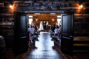 Set amongst the beautiful countryside right outside of Madison, a beautifully designed wedding with the prettiest shade of slate blue, and white peonies from Hy-Vee sure put a modern twist on this rustic wedding at Fields Reserve. Pair that with Jacob and Danielle saying, “I do” in the most charming ceremony barn beneath a sparkling chandelier with Madison wedding photographer, Ann Gorgen Photography behind the lens, and you’ve got a stunning wedding affair.